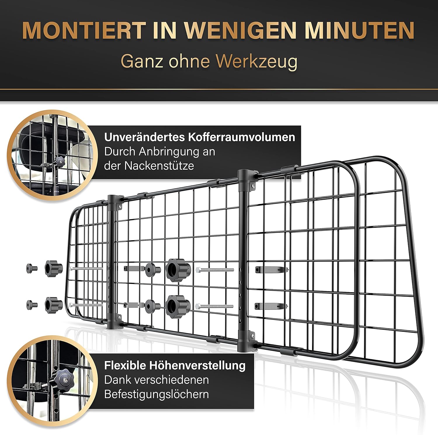 Универсална защитна решетка за багажник на кола Heldenwerk за кучета за транспортиране на вашето куче - предпазна решетка с приставка за облегалка за глава - напълно регулируема защитна решетка за багажник, черна