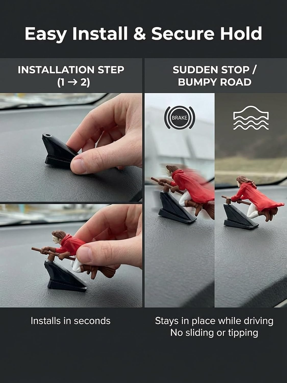 Универсални декорации за табло с метли и вещици, декорация за табло с метла на вещица, фентъзи декорация за кола с ефект на дрифт и въртене, динамичен мини декор за интериора на превозното средство (2, B)