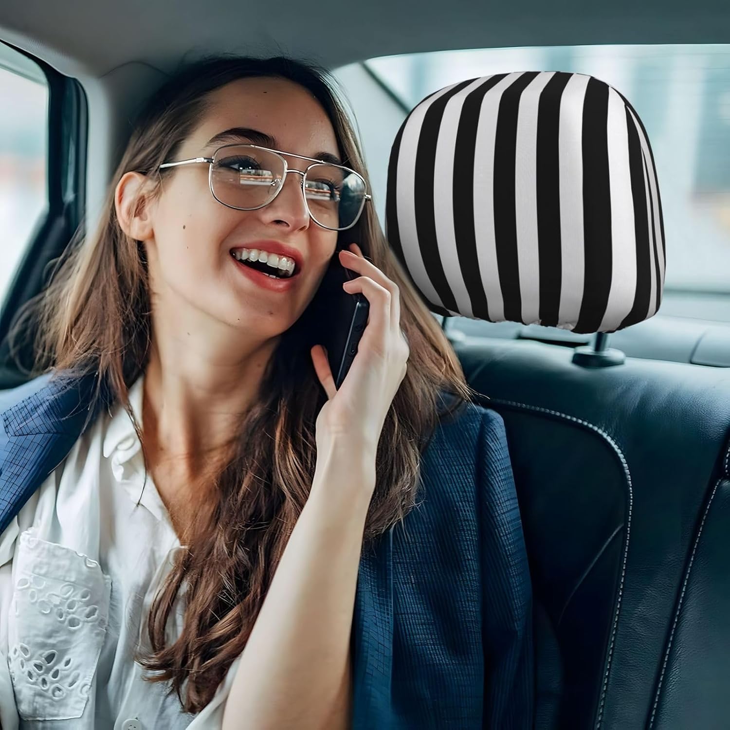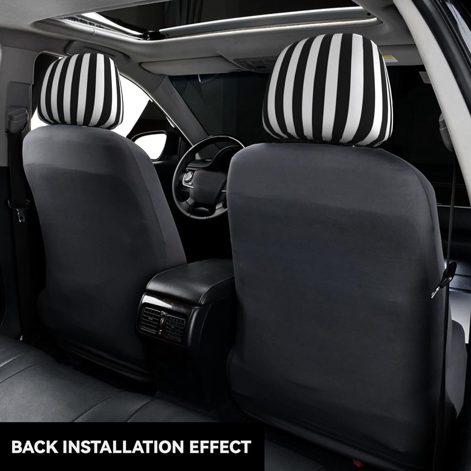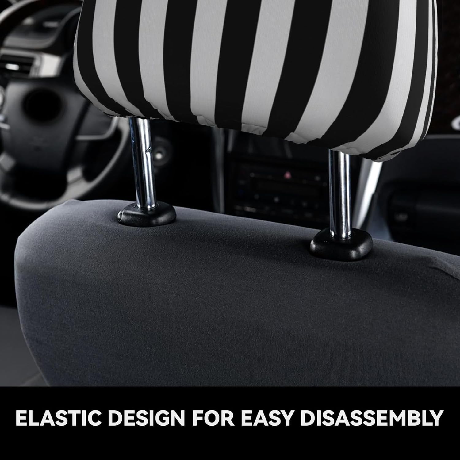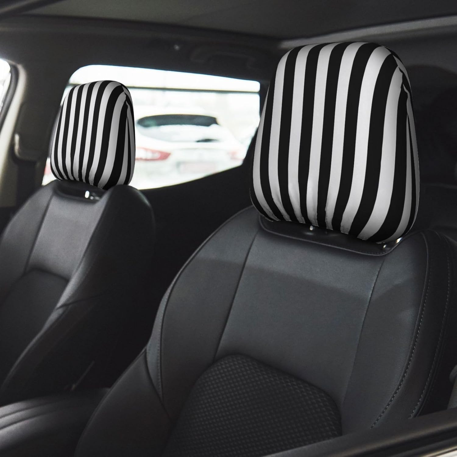 С дължина 27,9 см и ширина 26 см, те пасват на повечето модели автомобили и осигуряват плътно прилягане без подхлъзване. Монтажът е лесен: просто ги поставете върху облегалката за глава. Еластичната закопчалка на долната част осигурява сигурен и лесен процес на монтаж и демонтаж.