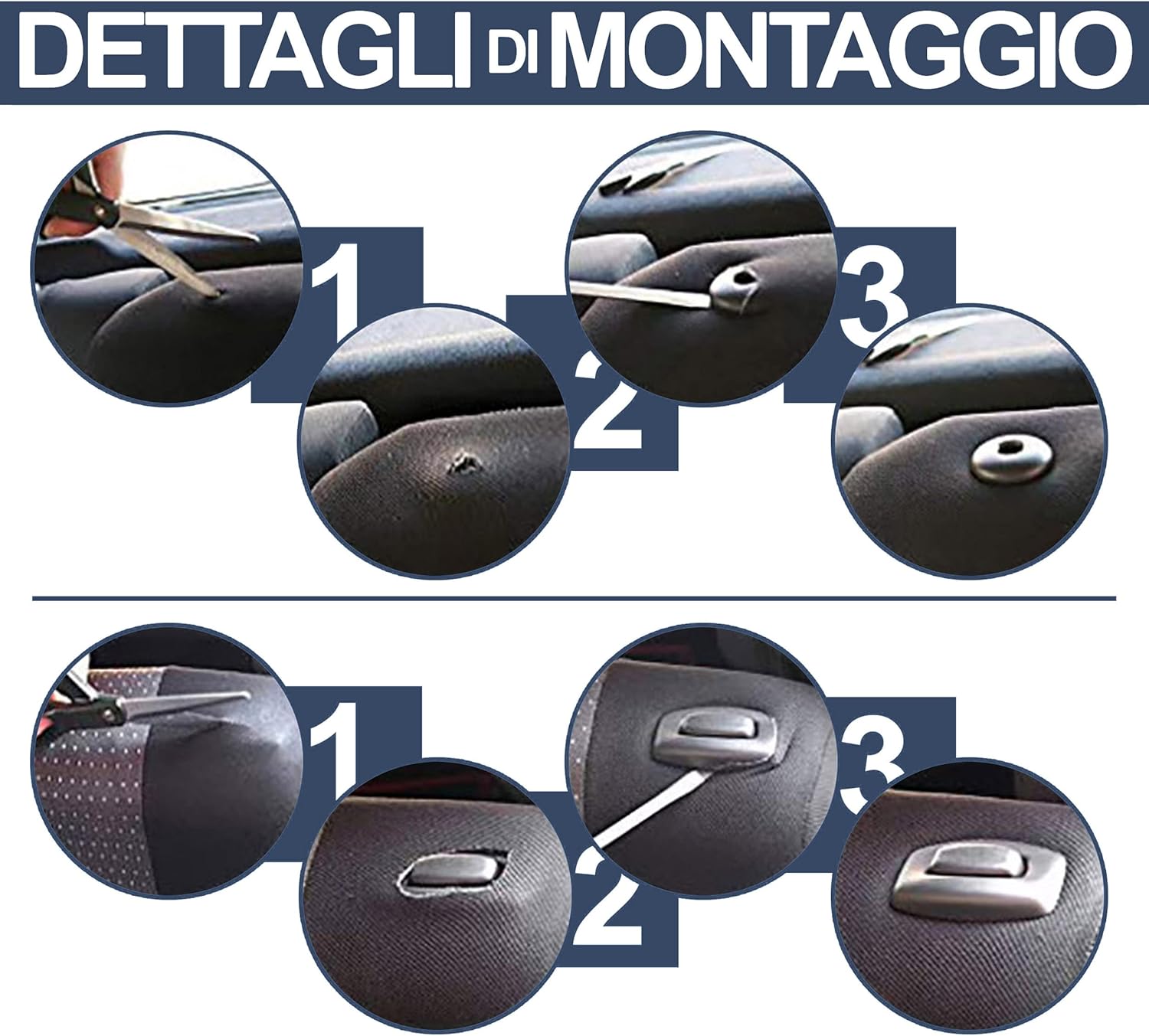 Комплект от 6 универсални калъфа за седалки. Универсалният комплект включва 2 калъфа за предни седалки, 2 калъфа за облегалки за глава и 2 отделни калъфа за задни седалки. Калъфите се монтират бързо и лесно. Платът е обработен, за да осигури безупречен цвят, който няма да избледнее на слънце. Тези калъфи защитават седалките и добавят цвят и характер към вашия автомобил, правейки го уникален и персонализиран. Съвместим с повечето малки и компактни автомобили. Лека и еластична синтетична материя. Цветове: син, сив, кралско сиво и червен.