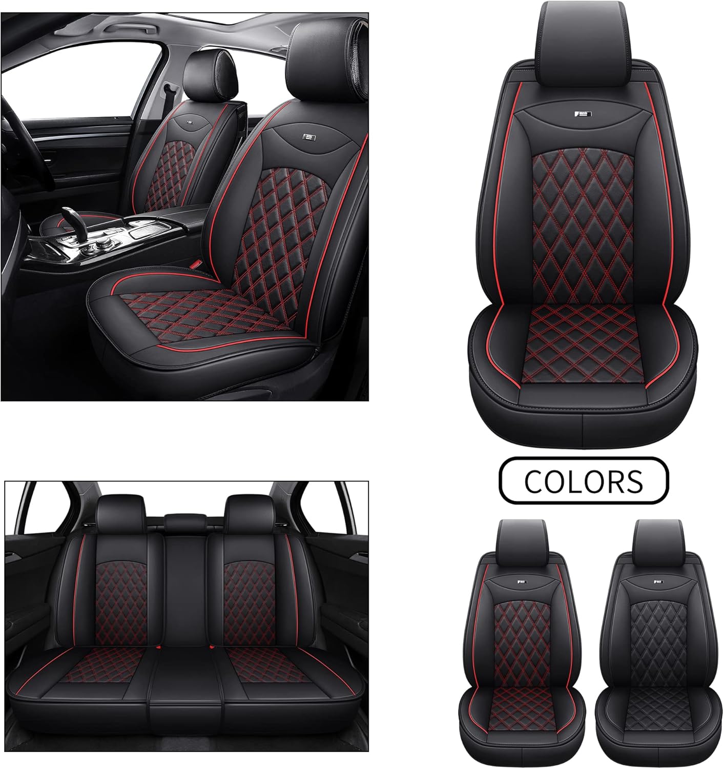 • УНИВЕРСАЛНА ПОДХОДЯЩОСТ: Кожените калъфи за автомобилни седалки са подходящи за 90% от всички превозни средства, включително автомобили, SUV-ове, електрически превозни средства, камиони, микробуси и SUV-ове. Ако не сте сигурни дали са подходящи за вашия автомобил, моля, свържете се с нашето обслужване на клиенти!