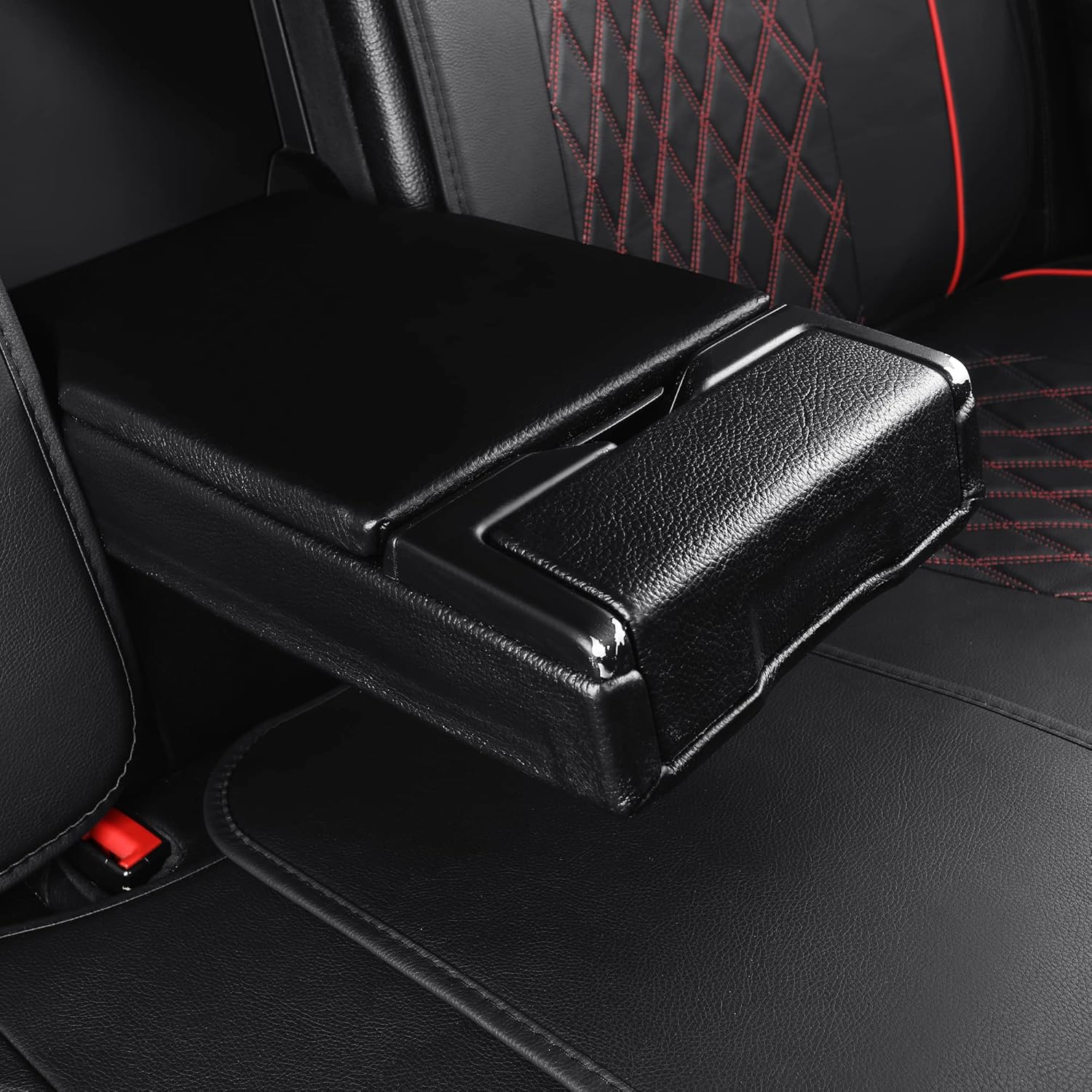 Универсални калъфи за задни седалки, разделени на части, изкуствена кожа, черно-червен ромб мотив, имитация на кожа
