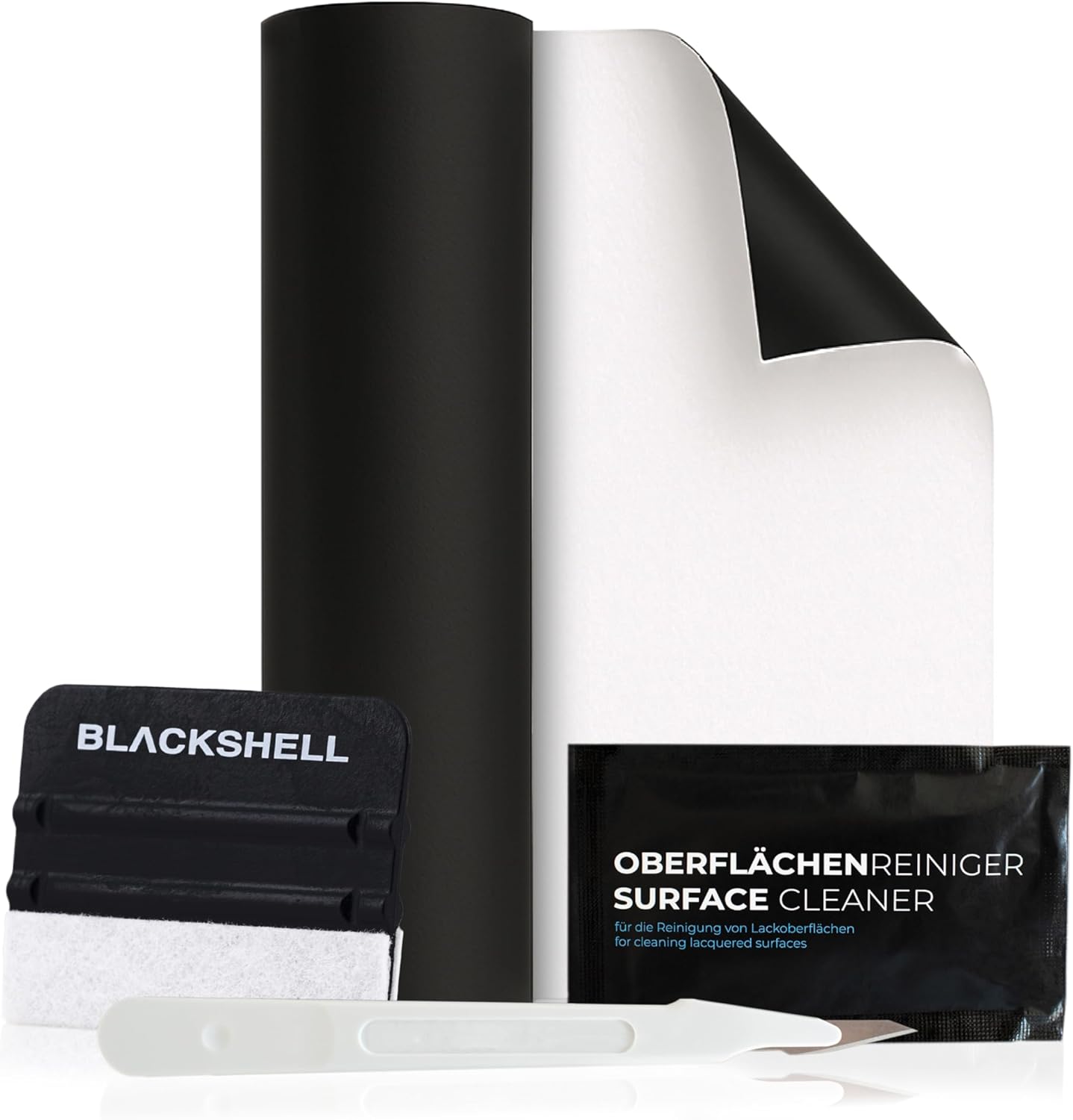 Универсално фолио за защита на боя Blackshell, матово черно, 12 см x 300 см с комплект инструменти, самозалепващо се фолио за кола, мотоциклет, велосипед