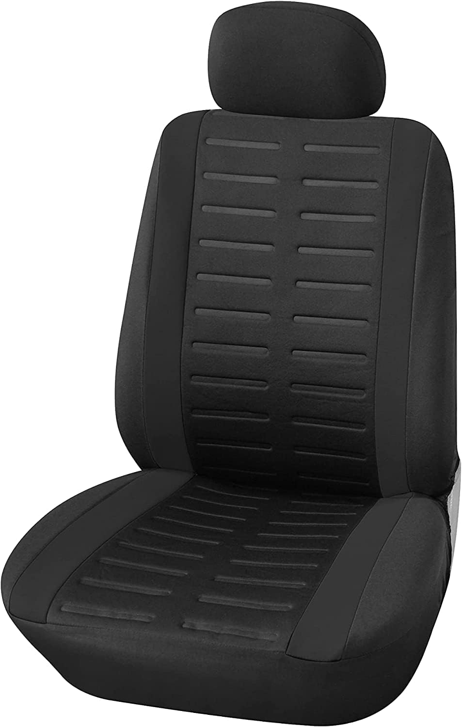 • Материал и характеристики: Черни калъфи за автомобилни седалки, изработени от висококачествен полиестер с 8 мм дунапренена подплата | Адаптивни, лесни за поддръжка (могат да се перет на 30 градуса) и дишащи.