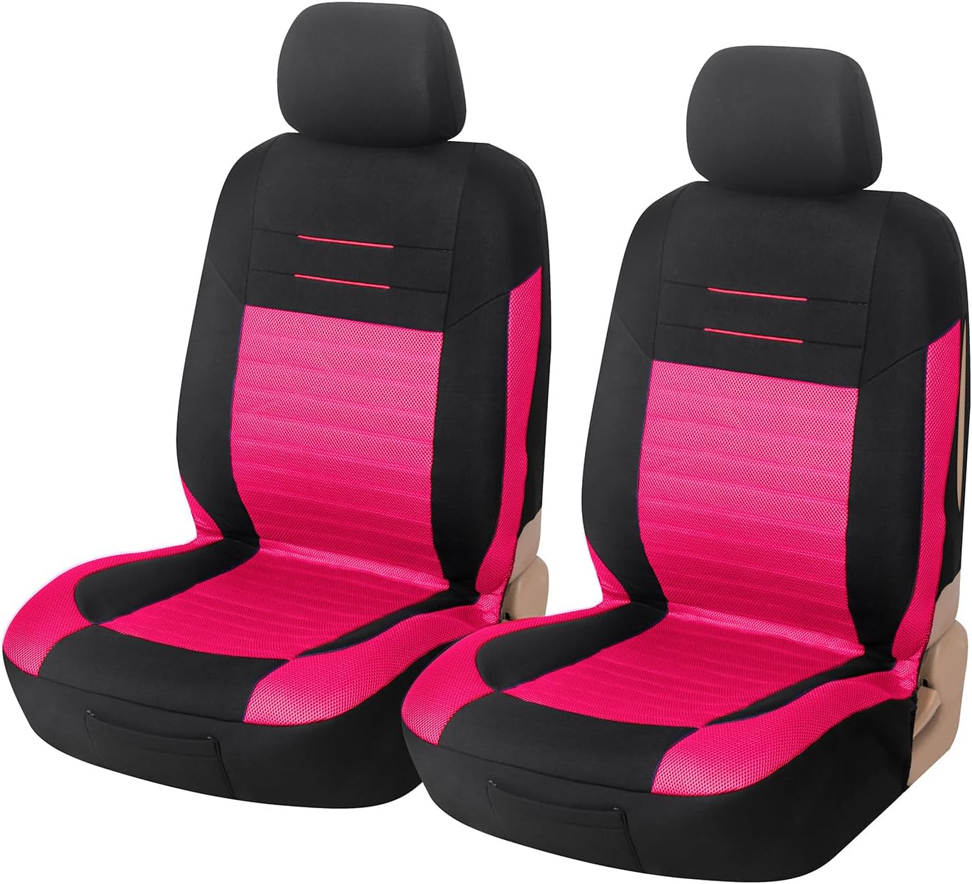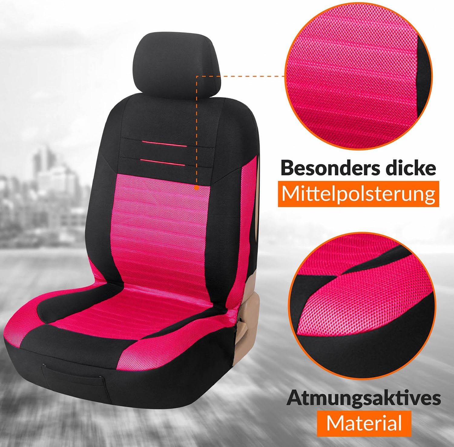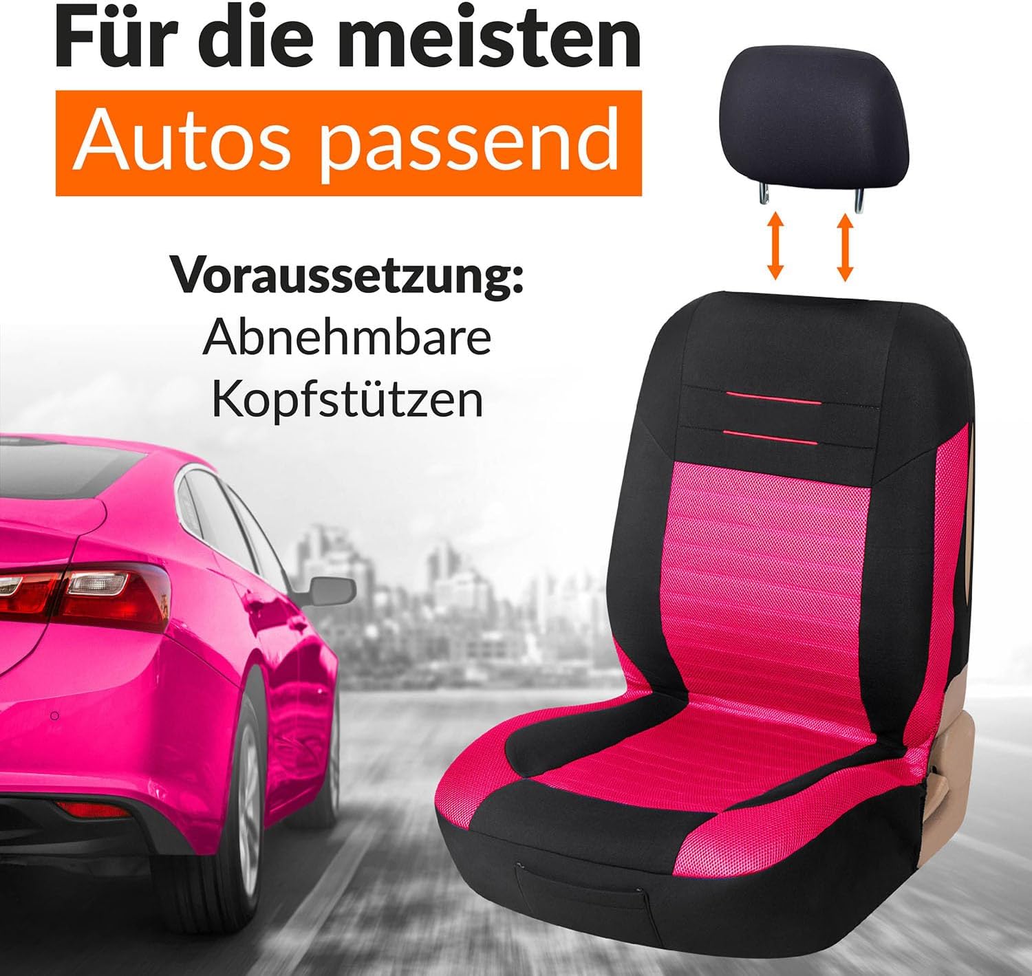 Upgrade4cars Калъфи за автомобилни седалки, розови, черни | Комплект калъфи за автомобилни седалки, розови, универсални | Калъфи за автомобилни седалки за шофьорска и пътническа седалка