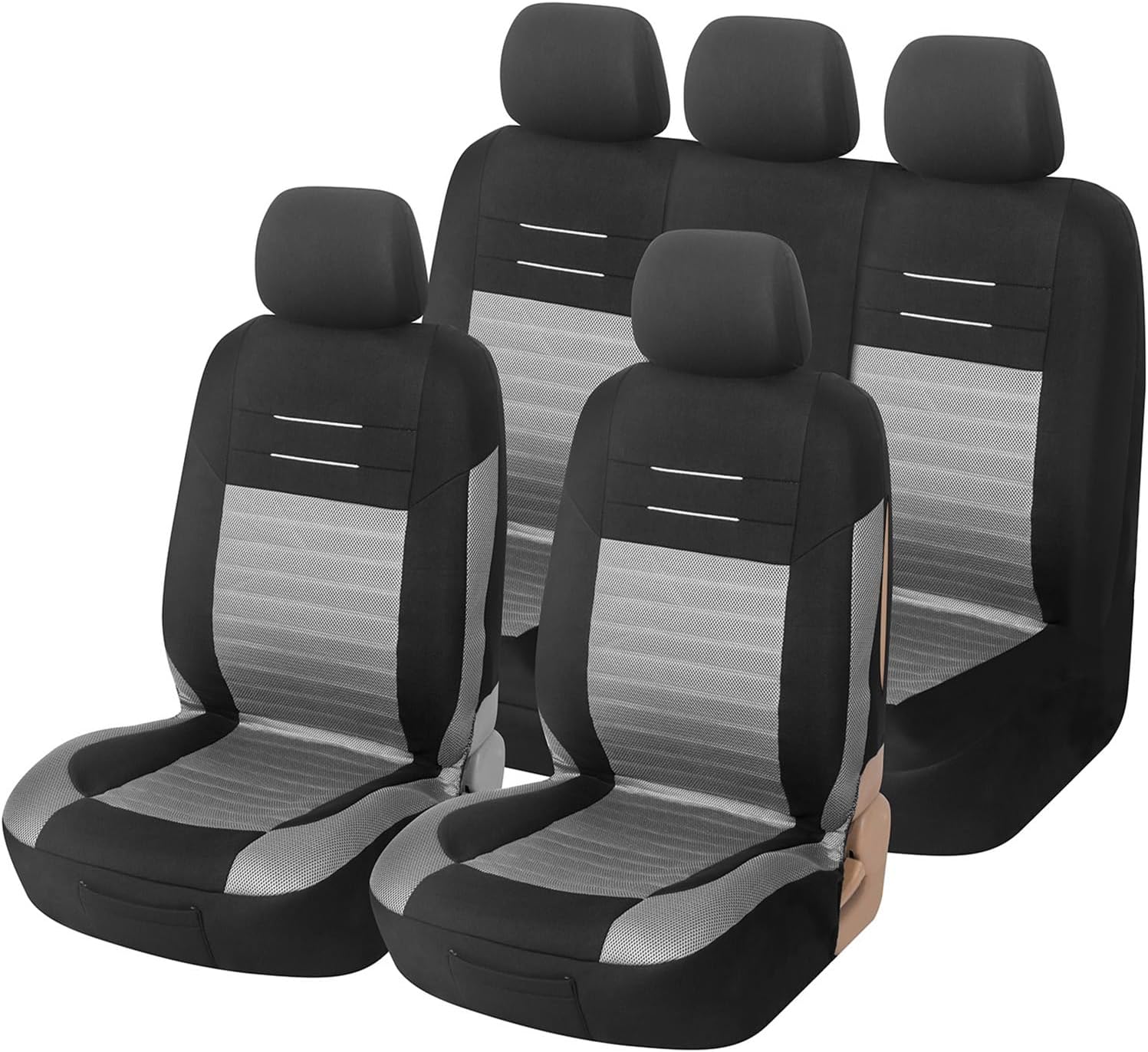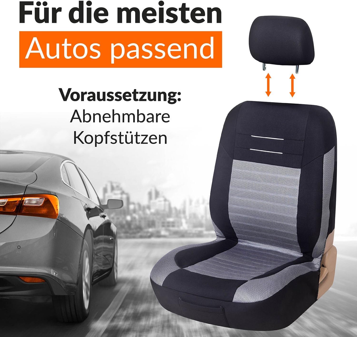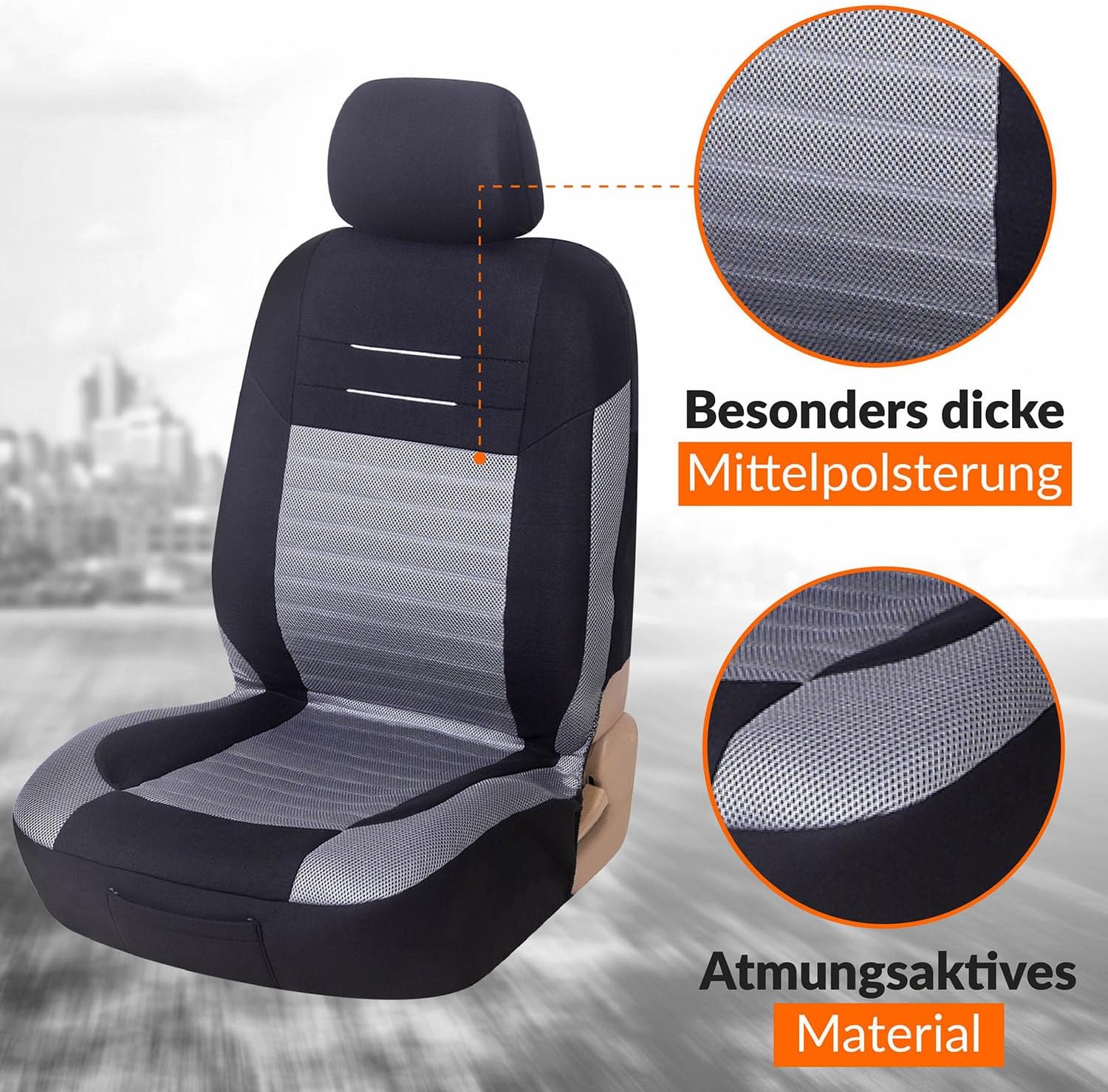 Upgrade4cars Калъфи за автомобилни седалки за предни седалки, сиво-черни | Универсален комплект калъфи за автомобилни седалки | Калъфи за автомобилни седалки за шофьорска и пътническа седалка