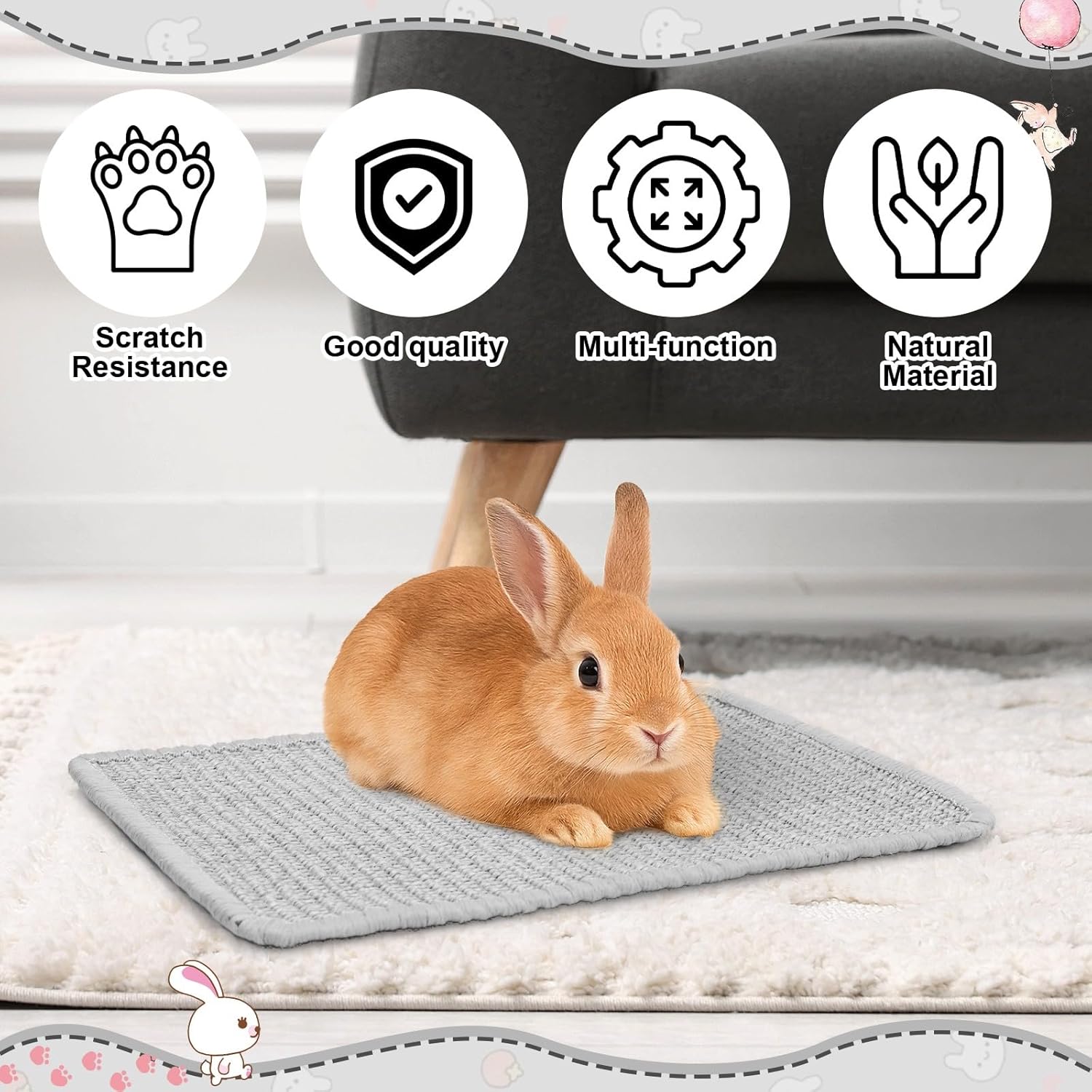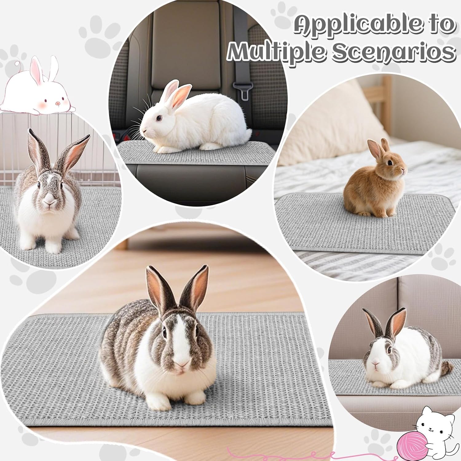 Задоволете естествените инстинкти за драскане и дъвчене на вашия домашен любимец с този комплект от 2 подложки за драскане за зайци. Този комплект аксесоари за зайци ви позволява да създадете удобно гнездо за домашни любимци и зона за почивка, която отговаря на разнообразните нужди на вашия домашен любимец.