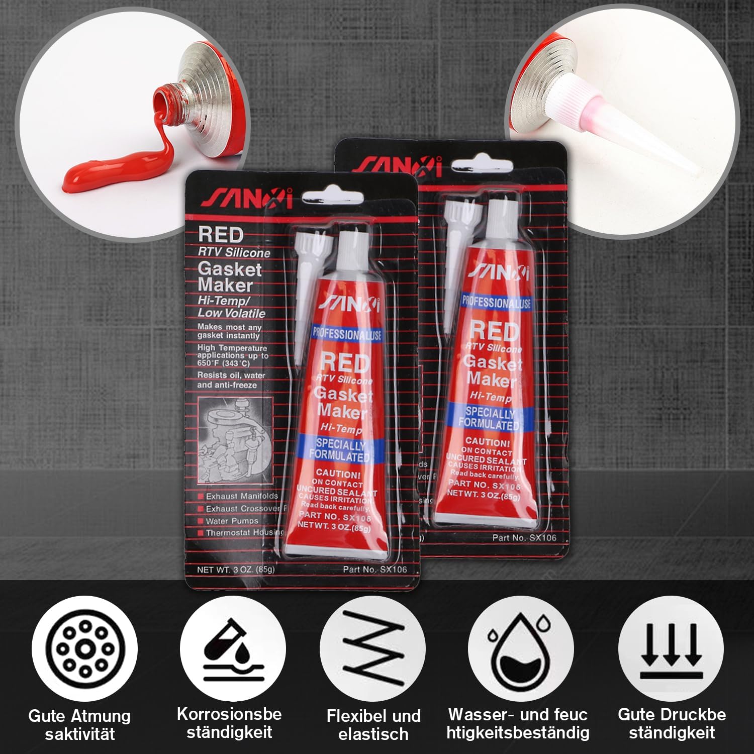 Уплътнител за двигател, уплътнител за ауспух, уплътнител за гарнитура на цилиндрова глава, силиконов уплътнител, уплътнител за радиатор, гарнитура за скоростна кутия, гарнитура за картер за ремонт на автомобили и мотоциклети (червен)