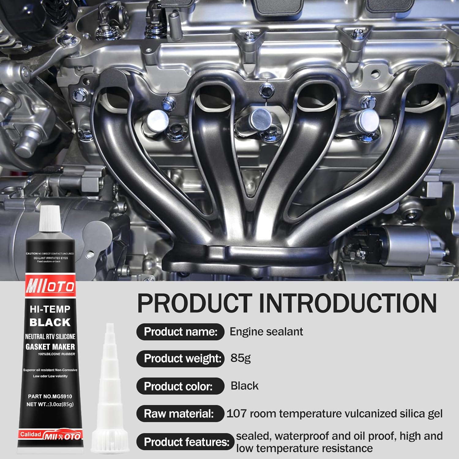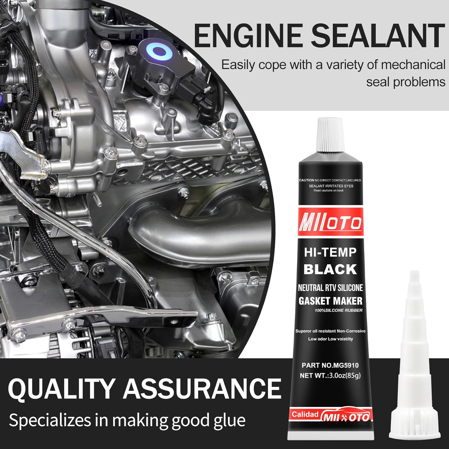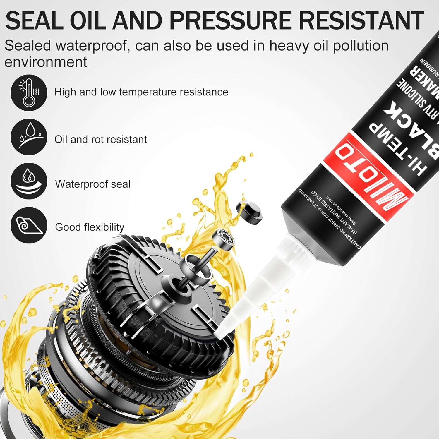 Уплътнител за двигател, Уплътнител за гарнитура на цилиндрова глава, Уплътнение за картер, Черен високотемпературен силикон, Силиконов уплътнител, Термоустойчив, Маслоустойчив, Регенерира уплътнения, -80°F до 650°F
