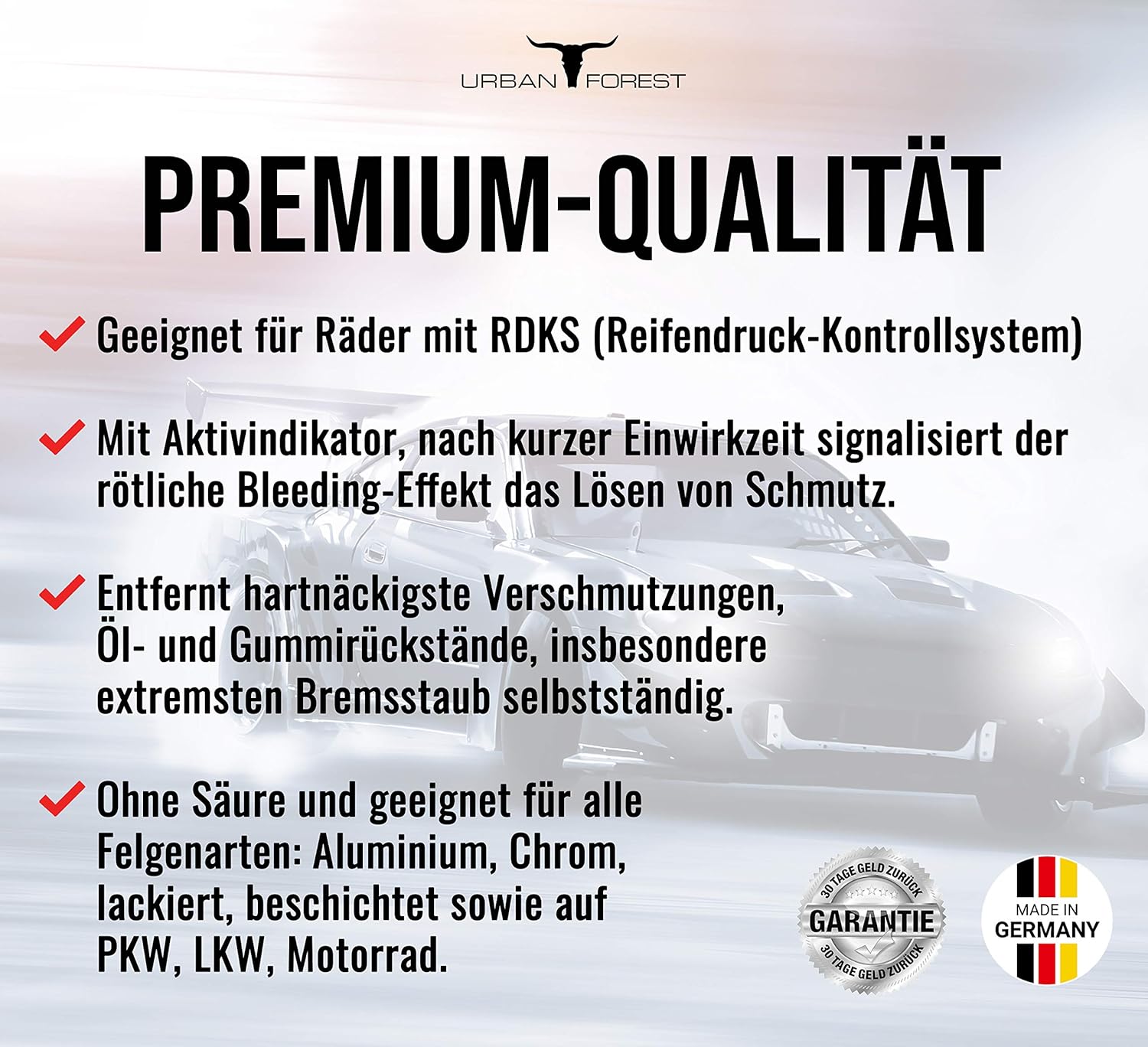 Recommendation: For complementary vehicle care, we recommend our Urban Forest premium rim cleaner and car interior cleaner.