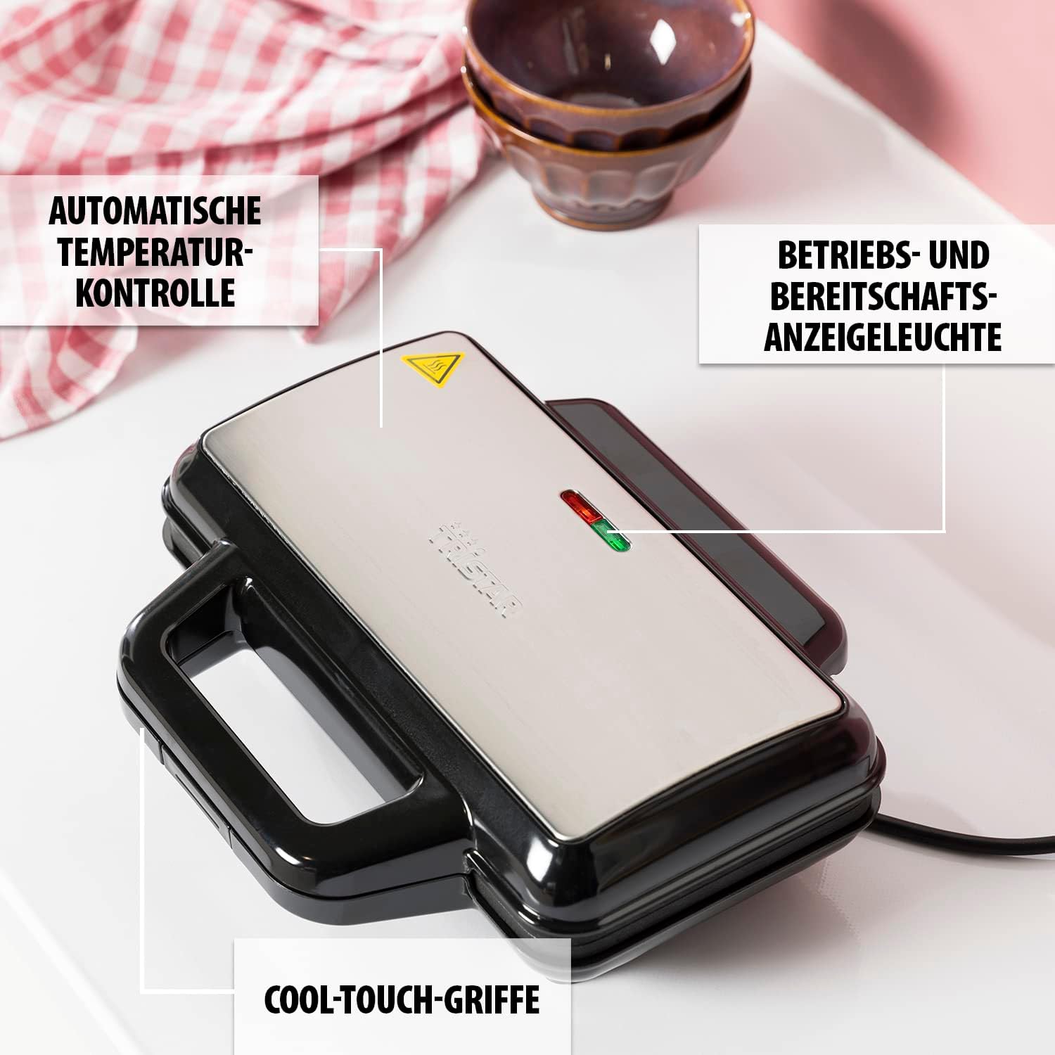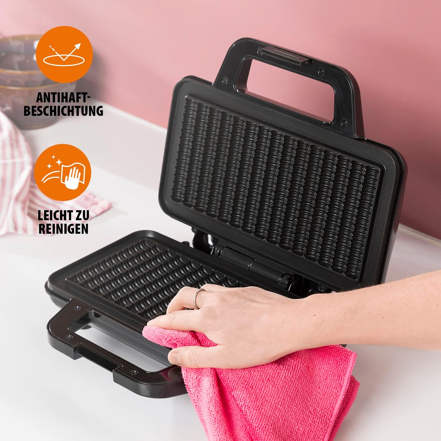 • Машината за гофрети има неплъзгащи се крачета и хладни дръжки, както и предпазно заключване и защита от прегряване.