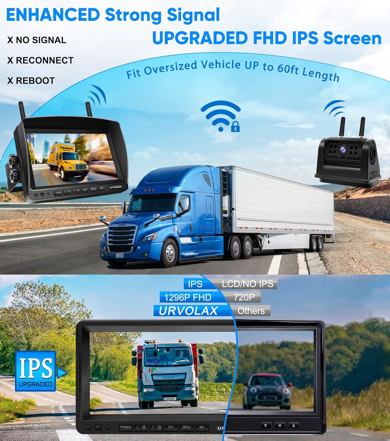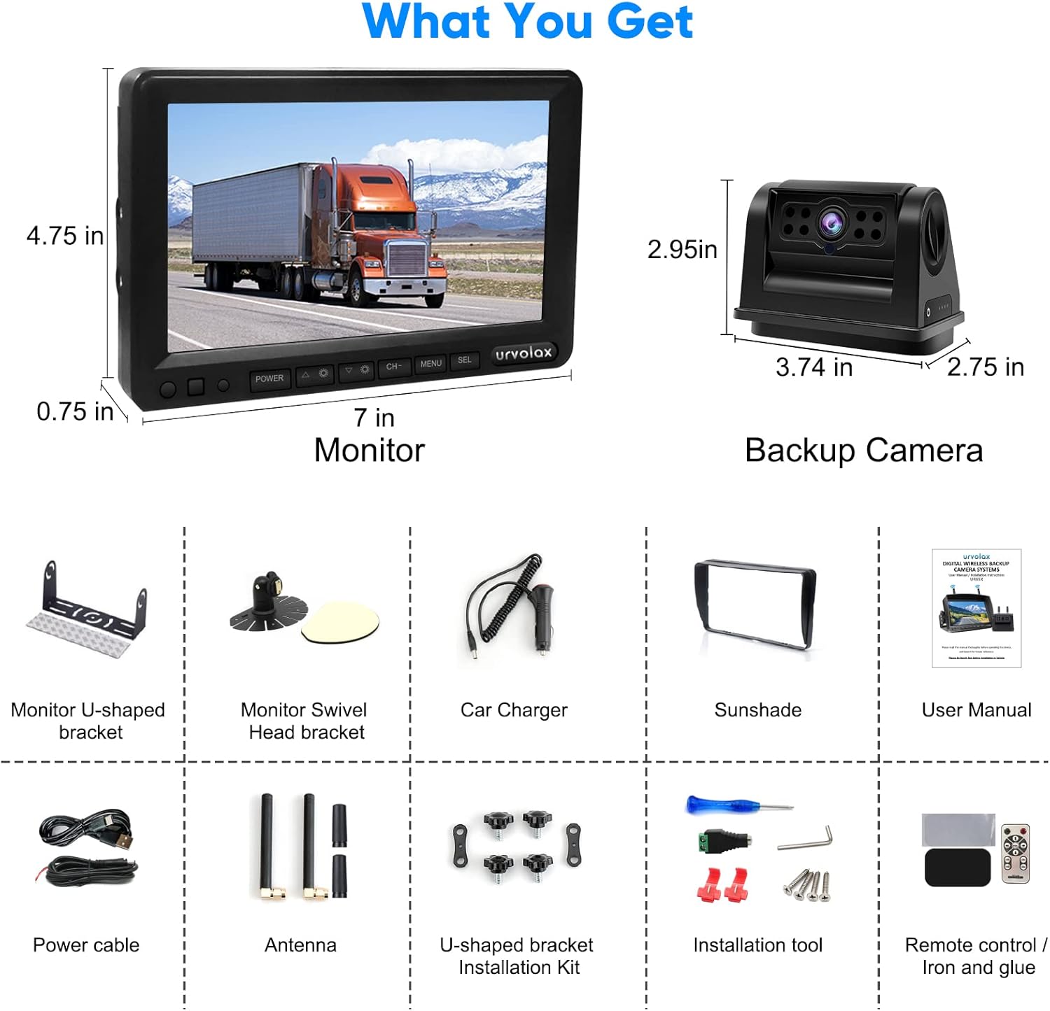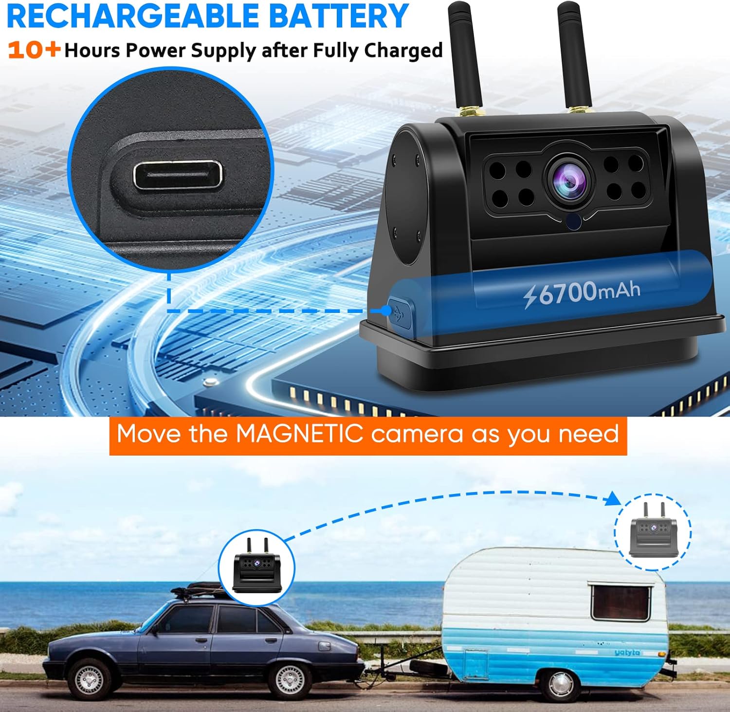 URVOLAX 100% безжична камера за заден ход, акумулаторна батерия 6700 mAh, магнитна камера за заден ход, радио, самостоятелно инсталиране, 7-инчов FHD монитор, видеозапис за камион, каравана, кемпер, кола, 65X