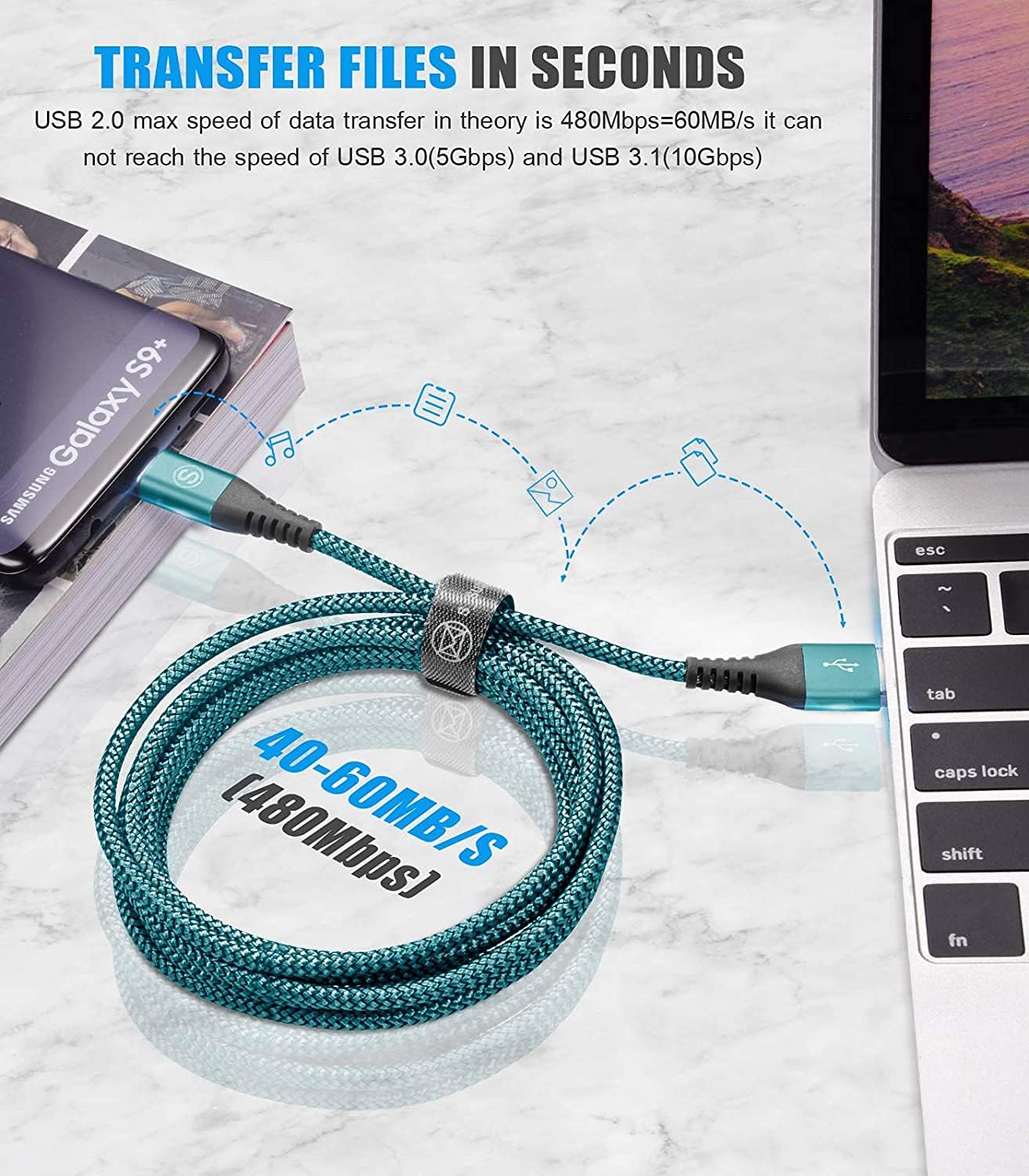 • Тестван и висококачествен найлон: с тестван живот от 5000+ огъвания, този USB кабел за зареждане е много по-надежден. Висококачественият найлонов оплетен кабел Type C е с допълнителна издръжливост и не се заплита.
