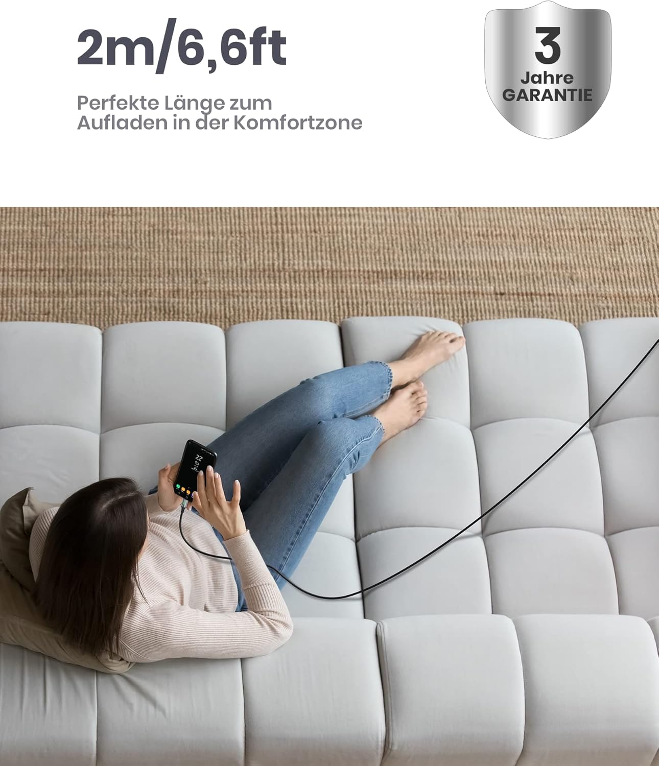 • Бързо зареждане от 3,1 A: Вътрешните медни проводници със свръхпроводимост позволяват безопасно и истинско зареждане от 3,1 A за вашето устройство с максимална скорост. Невероятно бързо зареждане на телефона ви от 0 до 93% за 1 час.