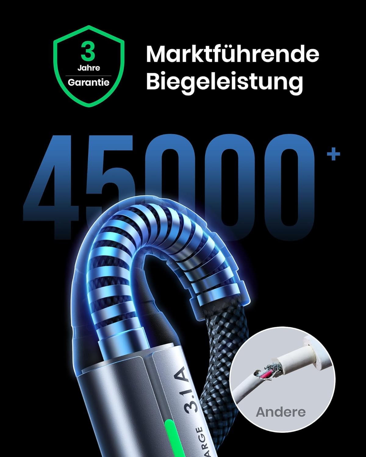 • Кабел за цял живот: Ексклузивната оплетена обвивка Flyweave плюс гъвкави съединения, комбинирани с невероятното време на огъване от 45 000 пъти и 3D прецизен лазерно заварен конектор от алуминиева сплав, създават кабел, който ще издържи по-дълго от всякога.