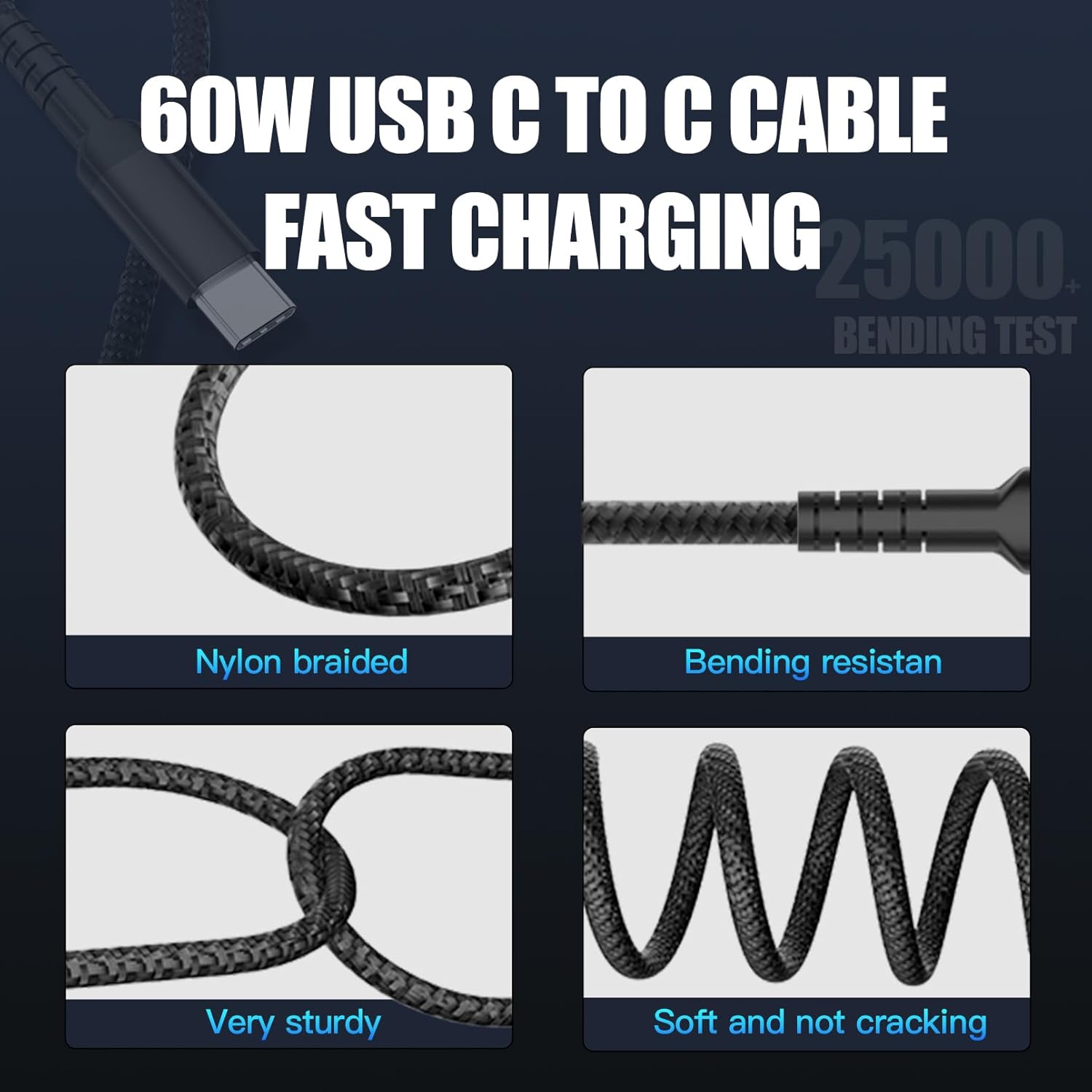 USB C зарядно за кола, 3-портов 65W двоен USB-C адаптер за захранване за кола PD/QC3.0 бързо зареждане USB зарядно за запалка за iPhone 15/14/13 Pro Max, Samsung Galaxy S24/S23/S22 (черно и кабел)