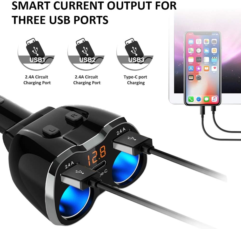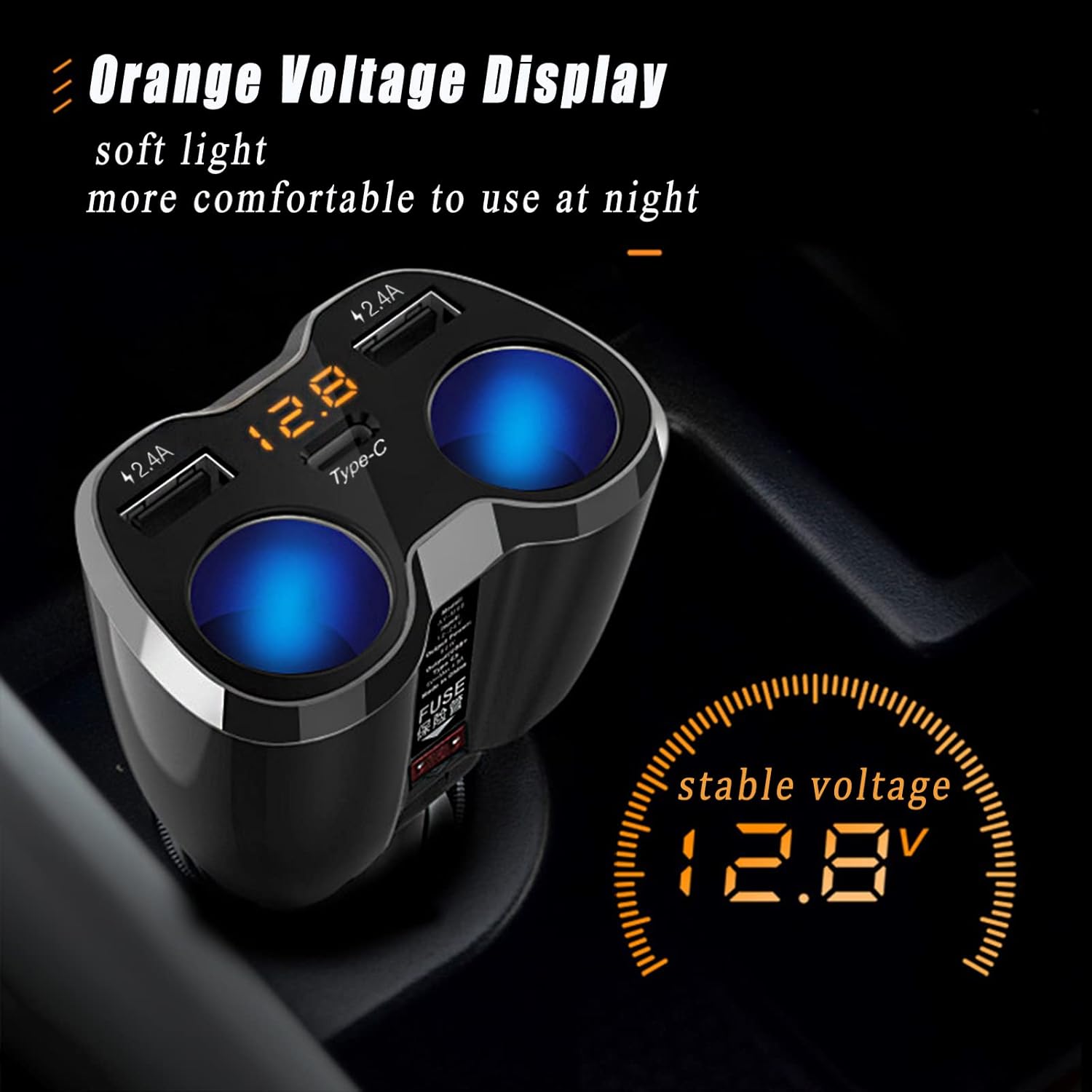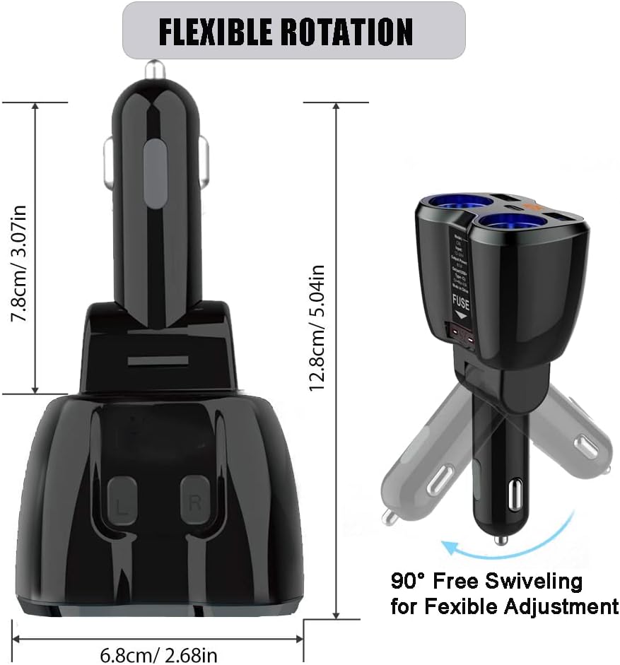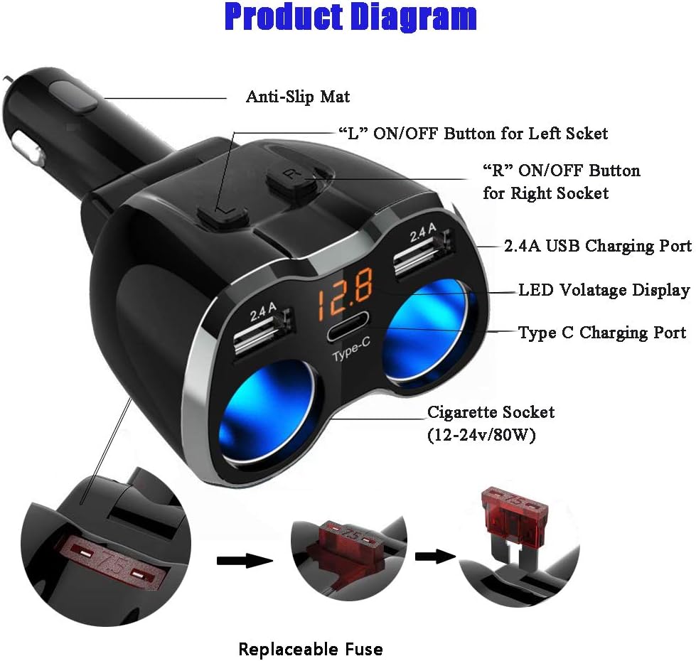 Built-in replaceable 7.5A fuse and smart IC protect the devices and the car from overheating, overload or short circuit. If the working power exceeds 80W or the input voltage is below 7V, the cigarette lighter splitter will automatically turn off.