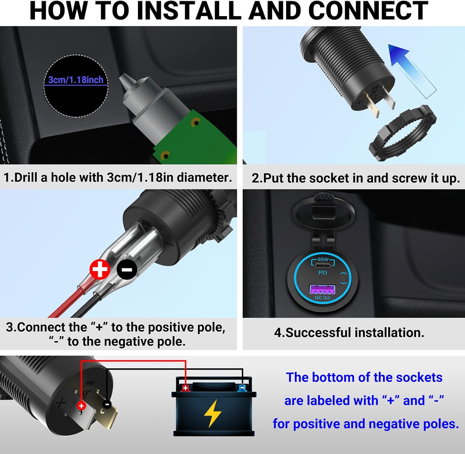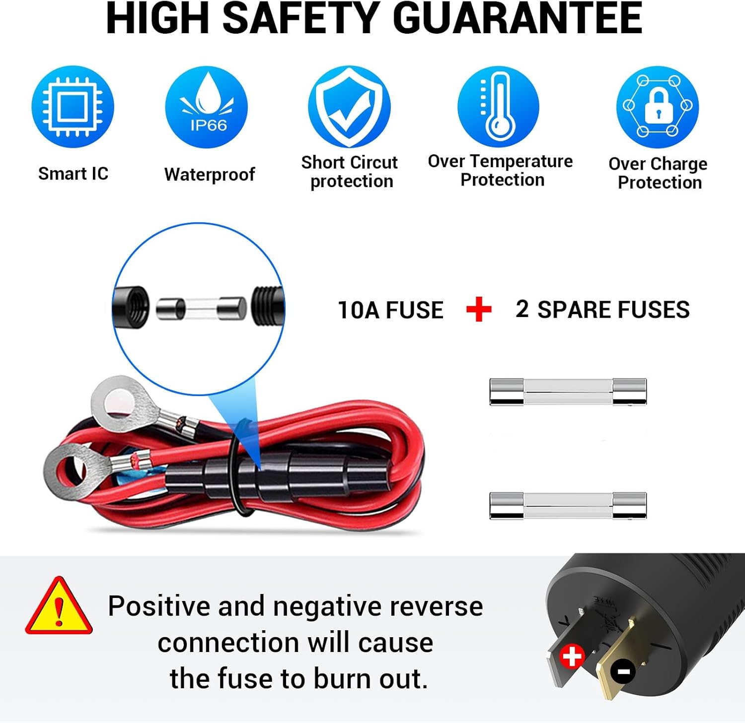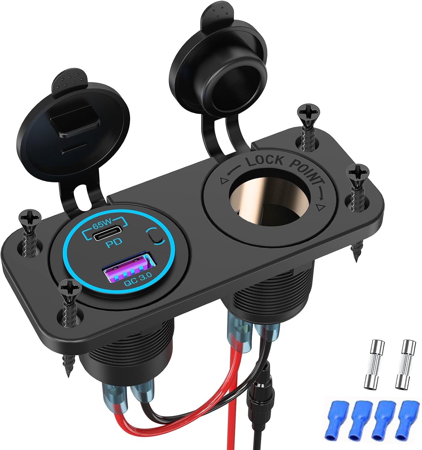 1 * PD 3.0 + QC 3.0 USB гнездо; 1 * 60 см кабел с два 10A предпазителя; 2* резервна защита 10 A