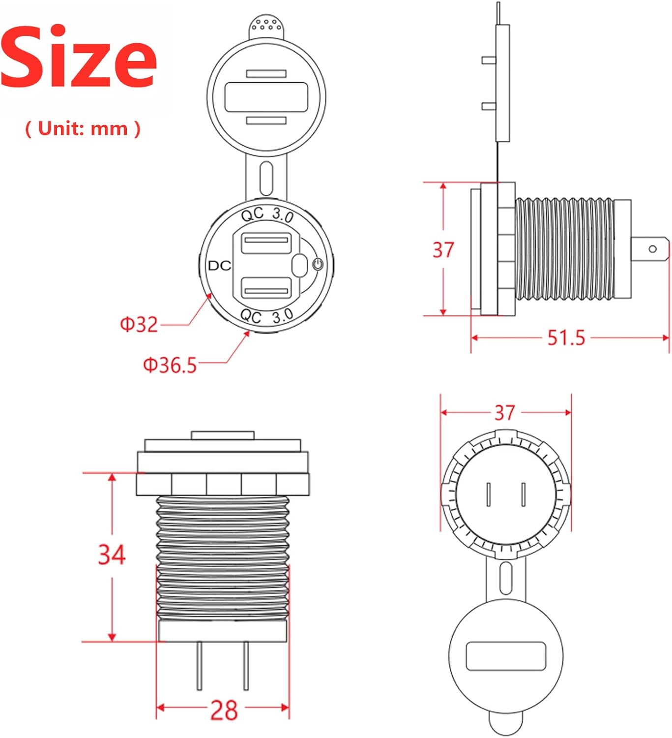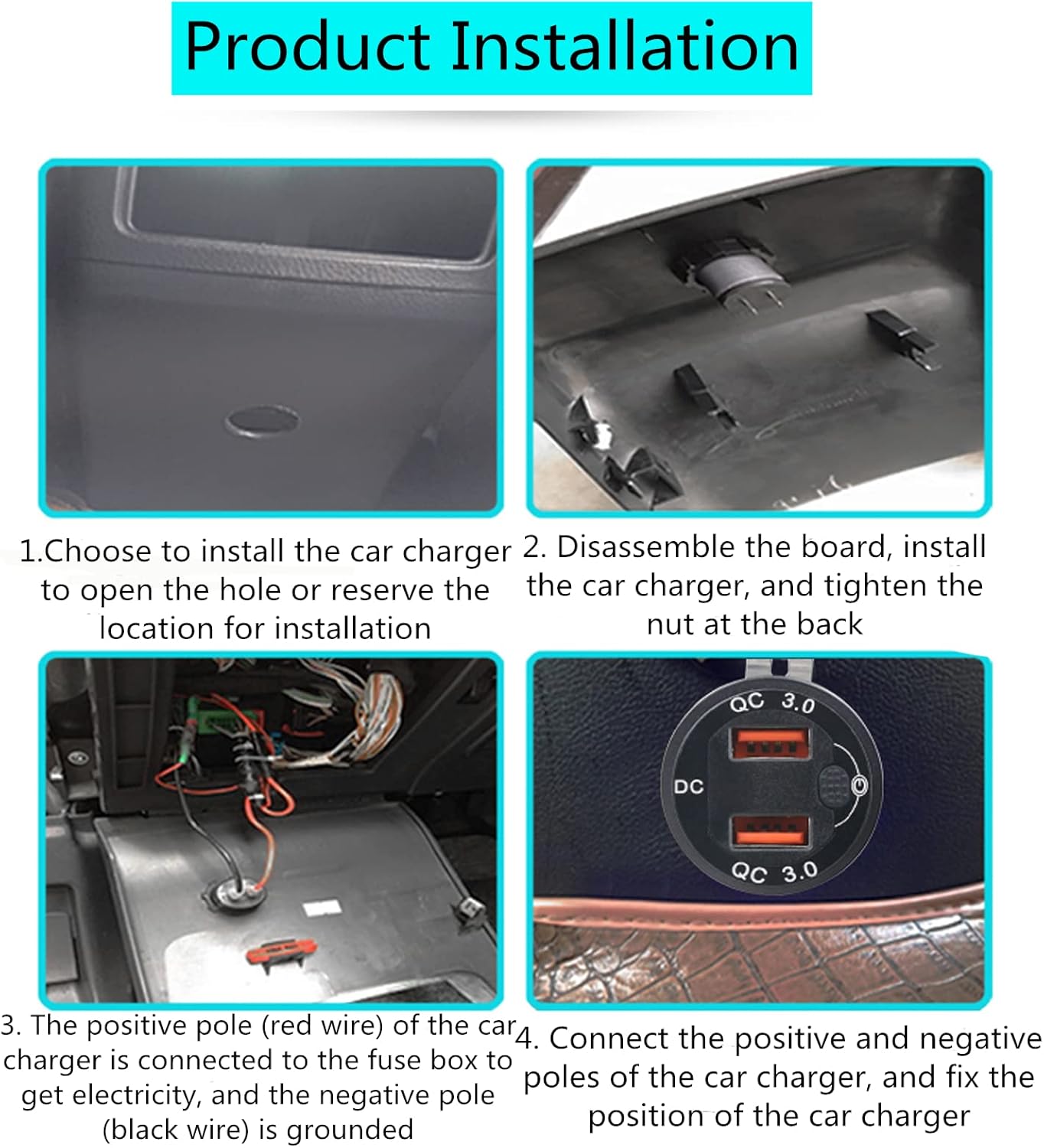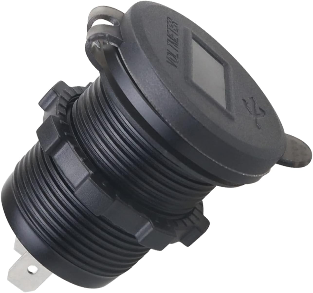 USB контакт за кола, контакт за зарядно за кола QC3.0, 12V/24V водоустойчив двоен USB контакт за зареждане на кола с 23,6-инчов кабел, LED дисплей и сензорен превключвател
