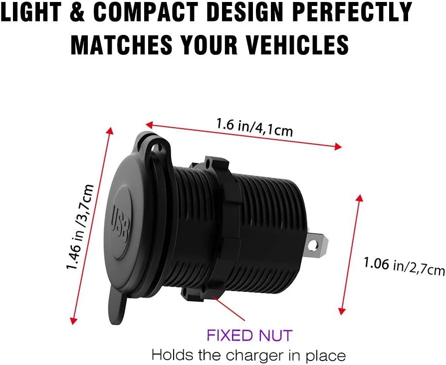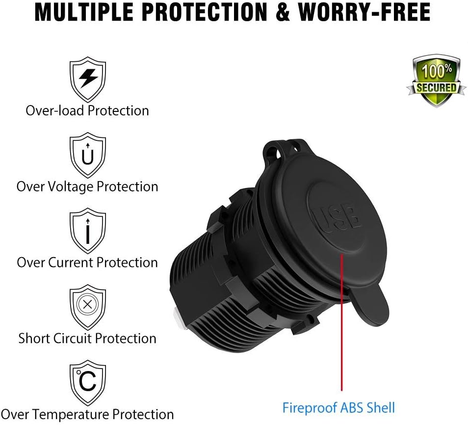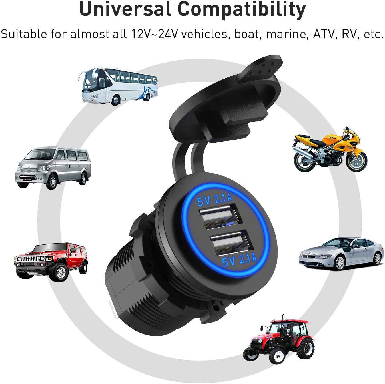 USB контакт за кола, пакет от 2 броя, контакт за зарядно за кола, 12 V/24 V, водоустойчив, двоен USB контакт за зареждане на кола с кабел 23,6 инча, двойни портове за зареждане за 12 V кола, кемпер, лодка, мотоциклет, мобилен телефон