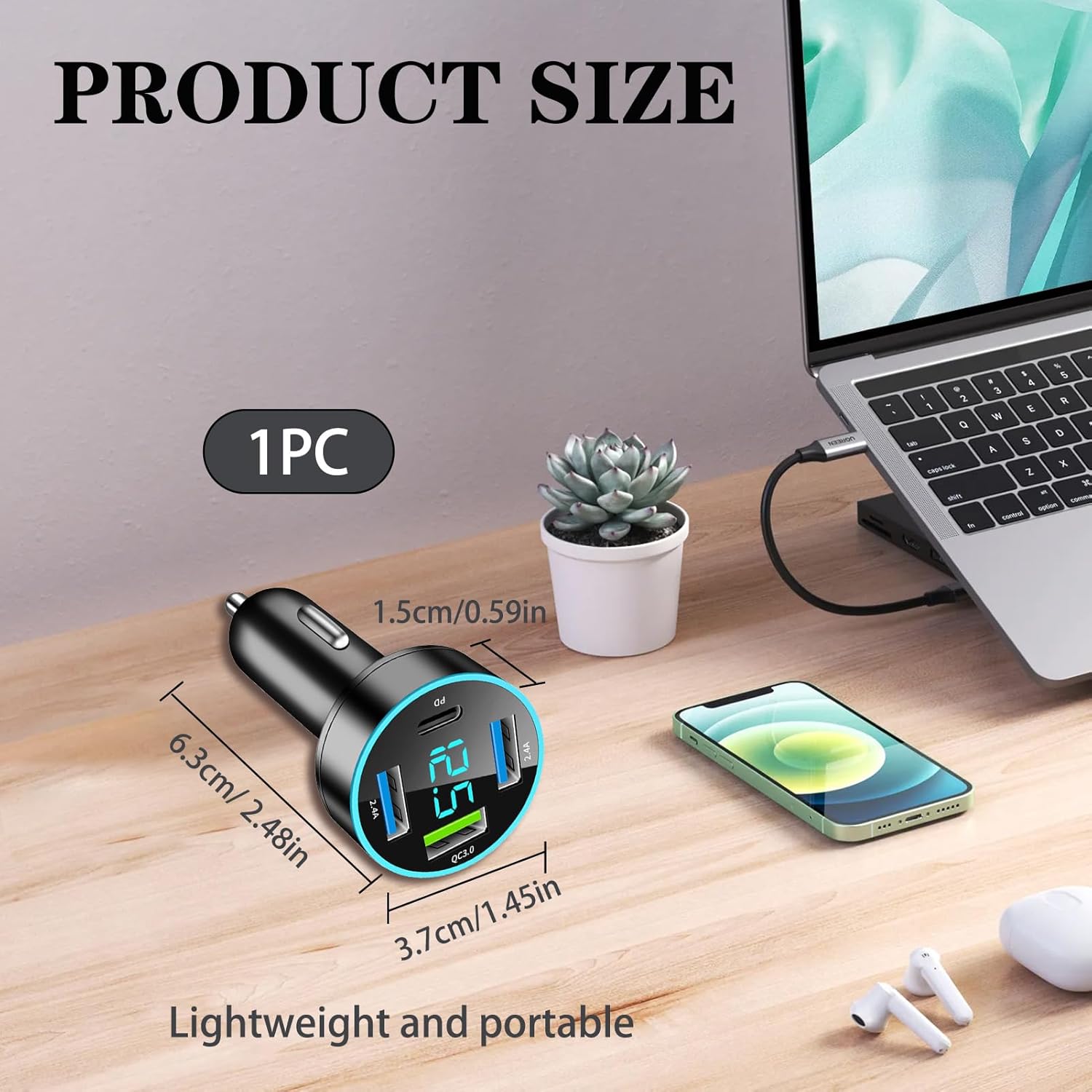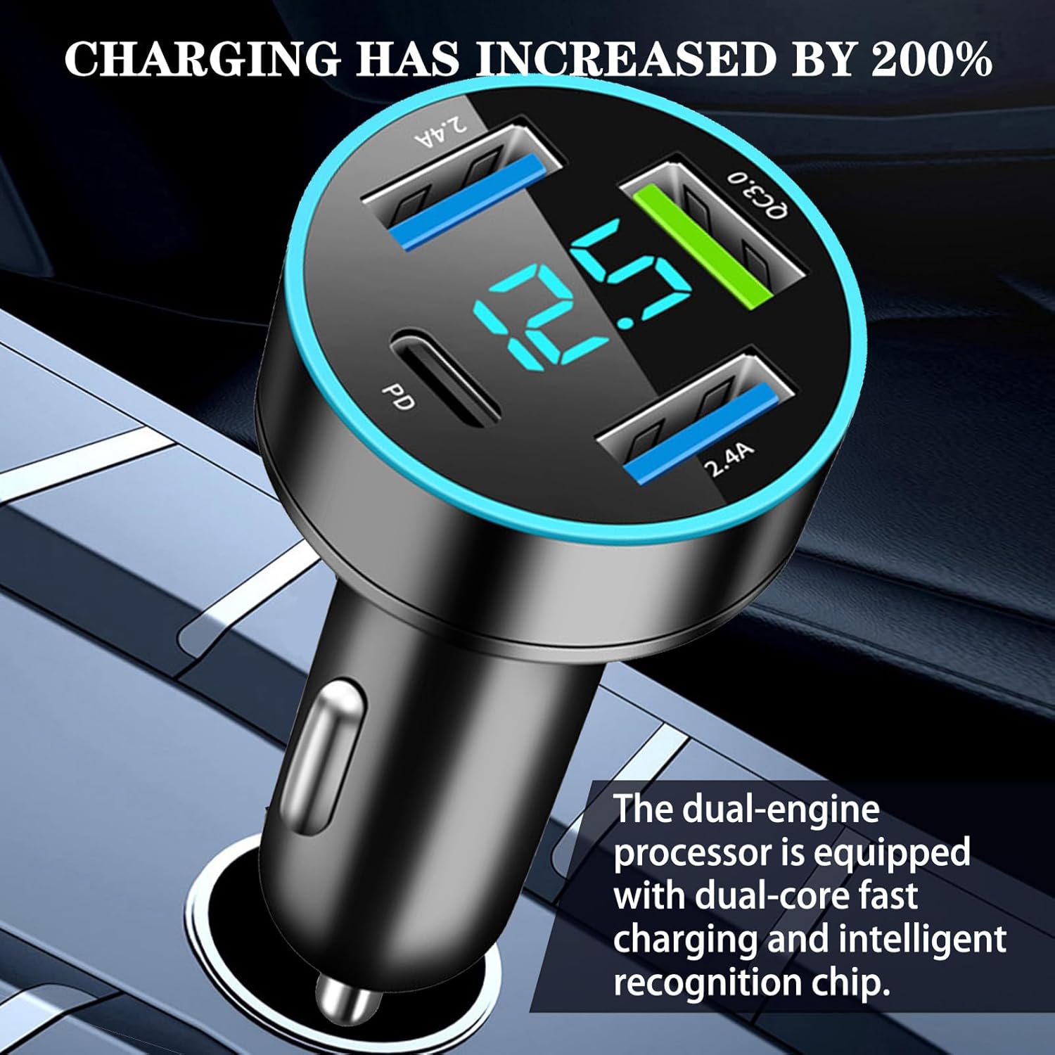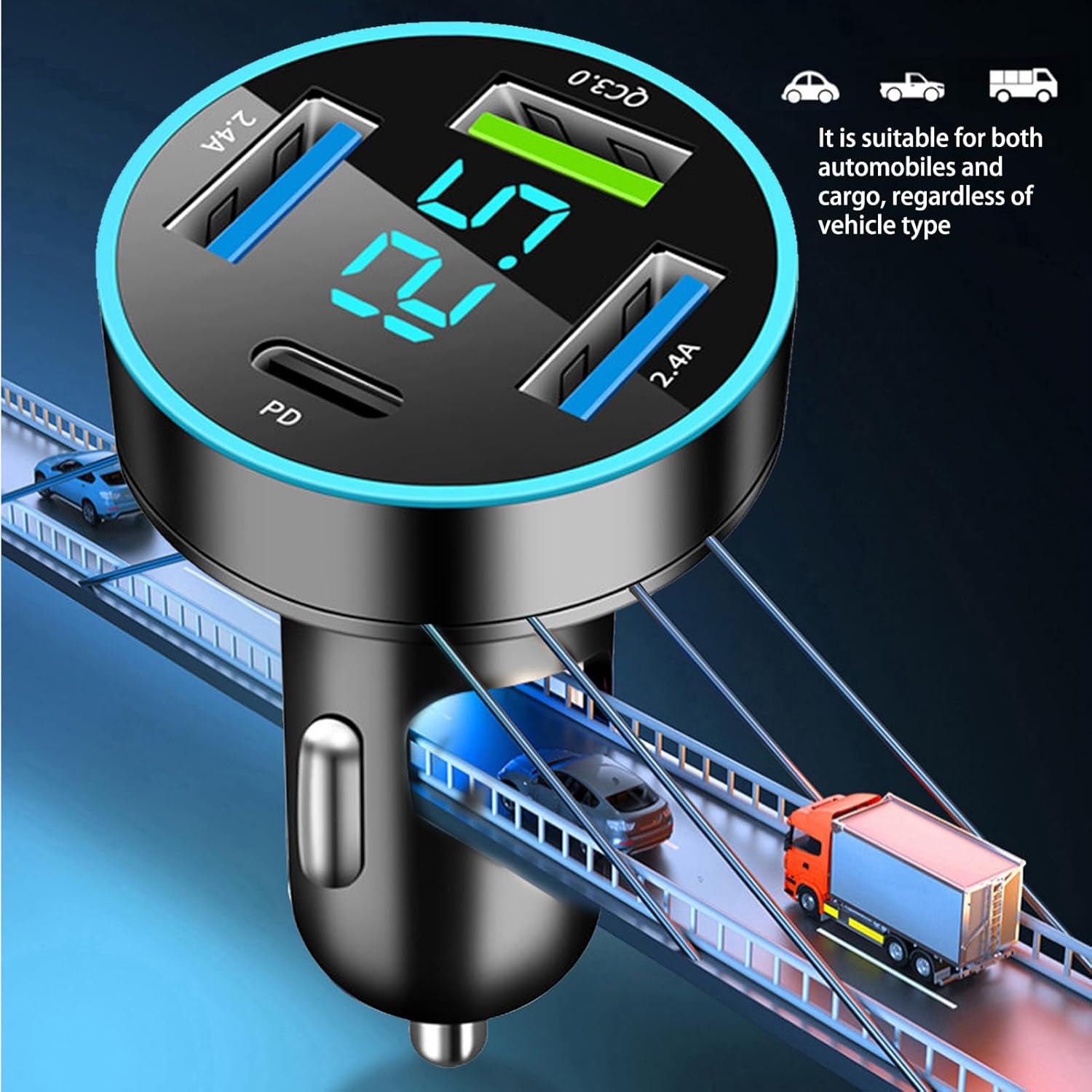 4-портово бързо зареждане: Нашият USB адаптер за запалка има четири порта за зареждане, включително QC3.0 [18W], PD [30W] и двоен 2.4A [12W]. USB гнездото за запалка поддържа технологията за бързо зареждане QC3.0 и PD, поддържа максимално входно напрежение от 12V до 24V, USB зарядното за кола може бързо да зарежда четири устройства едновременно. Зарядното за кола е идеално за зареждане у дома или при пътуване на дълги разстояния.