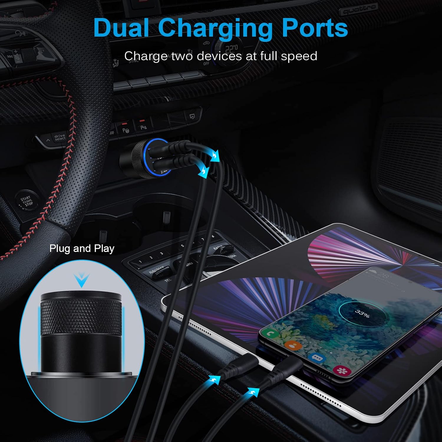 Захранвайте две устройства с пълна скорост с комбинирана мощност от 3,4 A. Всеки порт може да се зарежда със скорост от 2,4 A.
