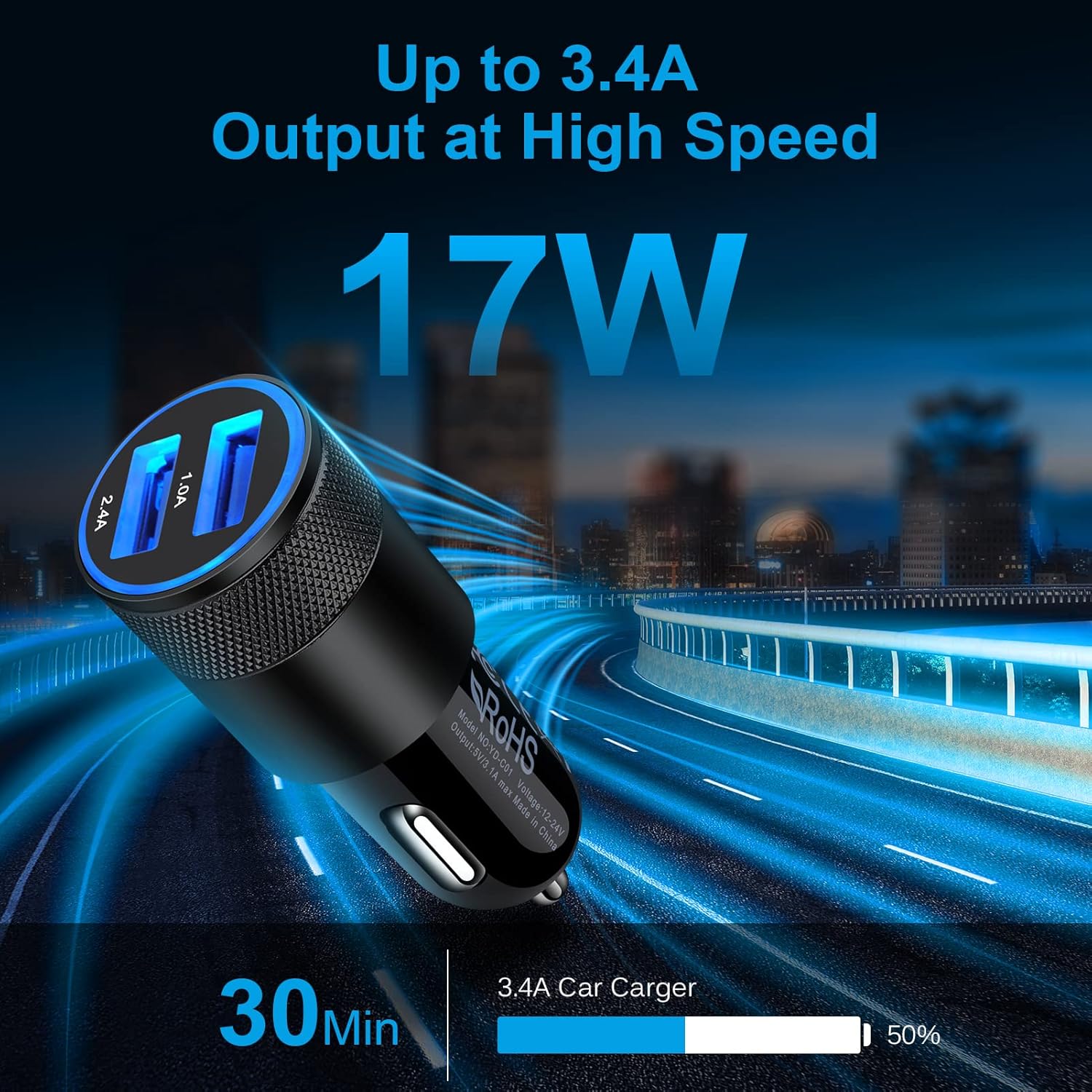 - Output: DC 17W/5V/3.4A (total).