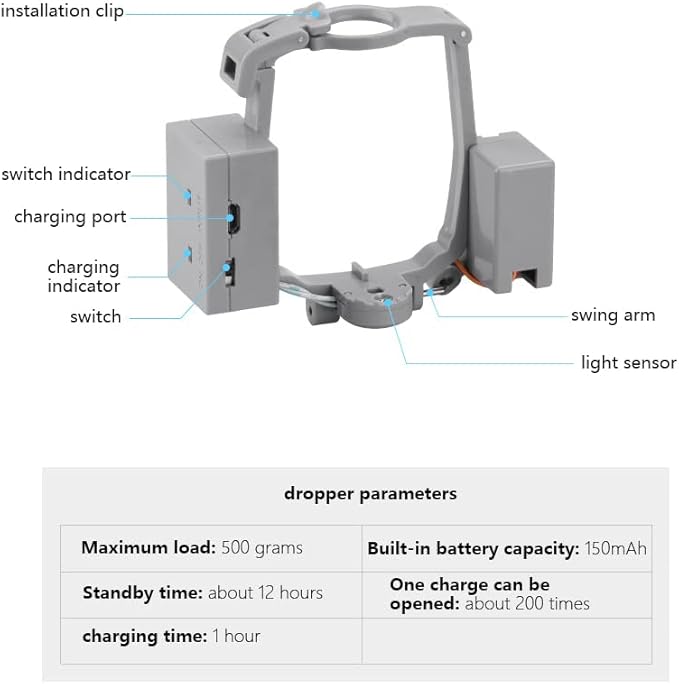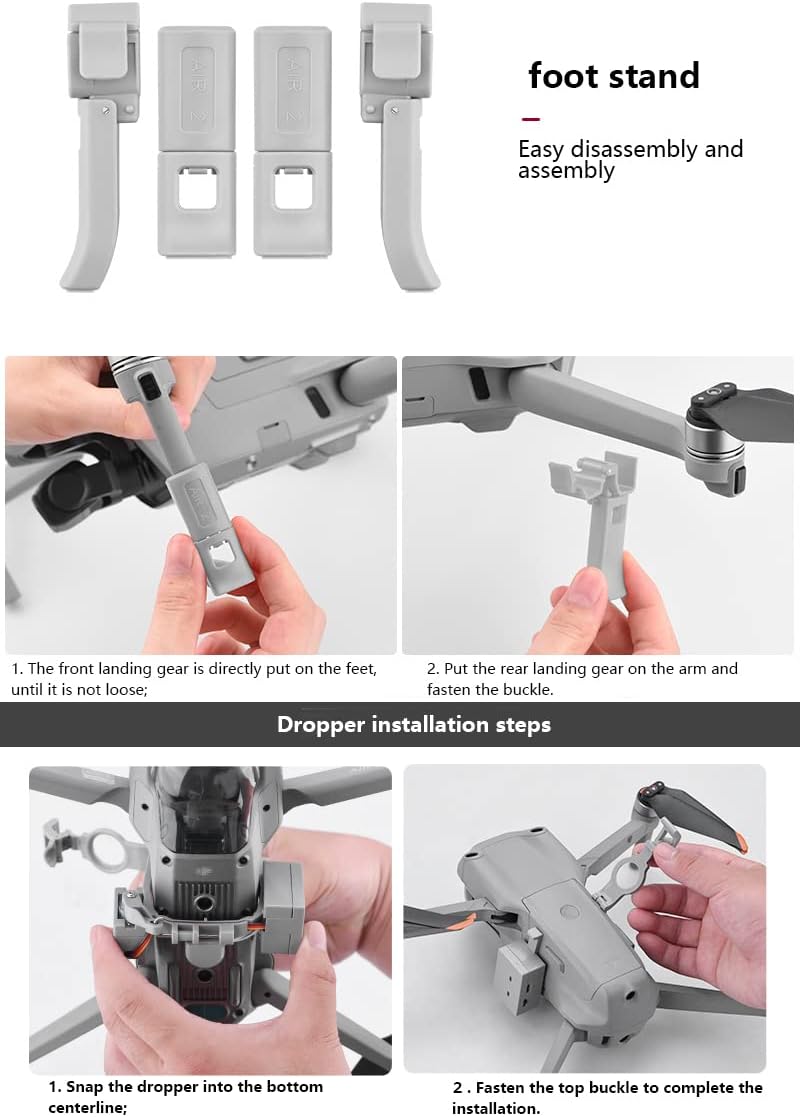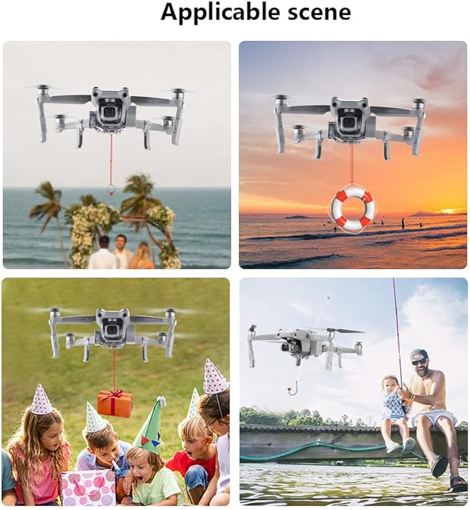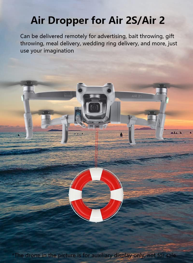 Устройство за доставяне на дрон, пускане от въздуха, бързо освобождаване, комплекти системи за пускане с комплекти за кацане на дрон за риболов, реклама, сватба и др., подходящи за аксесоари за дронове DJI MAVIC AIR 2. Бързо освобождаване, управление с едно докосване чрез дистанционно управление DJI. Лек и безопасен, не уврежда тежестта на дрона, нито го поврежда, лесен за настройване и премахване.