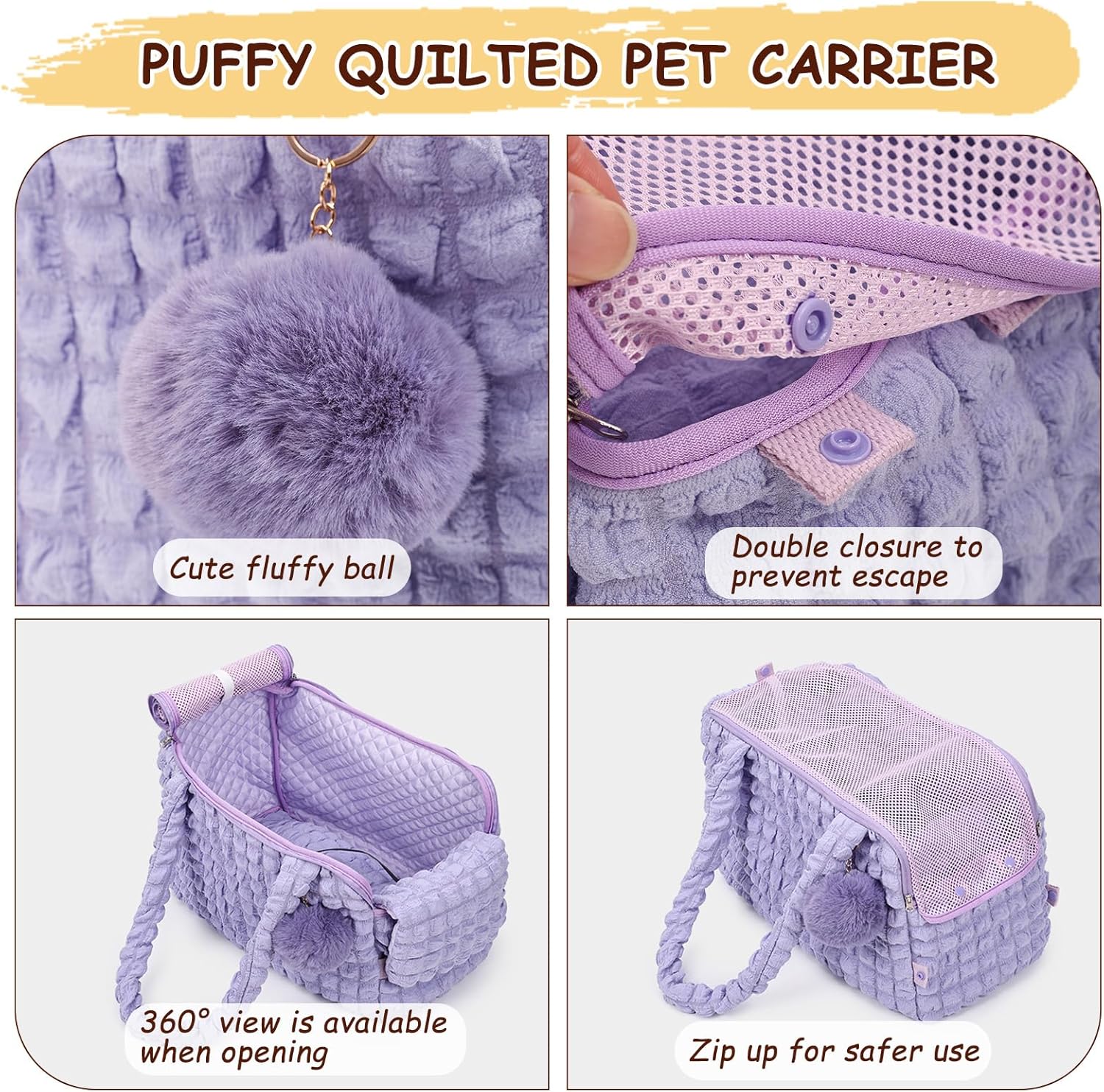 Тази стилна ватирана преносима раница за домашни любимци е идеална за малки кучета и котки. Вентилираните мрежести ципове осигуряват дишане, а лекият дизайн е лесен за носене. С пухкава топка за допълнително забавление, тя е идеална за посещения при ветеринарен лекар, пазаруване или пътуване. Проектирана за домашни любимци до 12 паунда (кученца) или 15 паунда (котки), тя осигурява комфорт и безопасност. Задължителна за модерните собственици на домашни любимци.