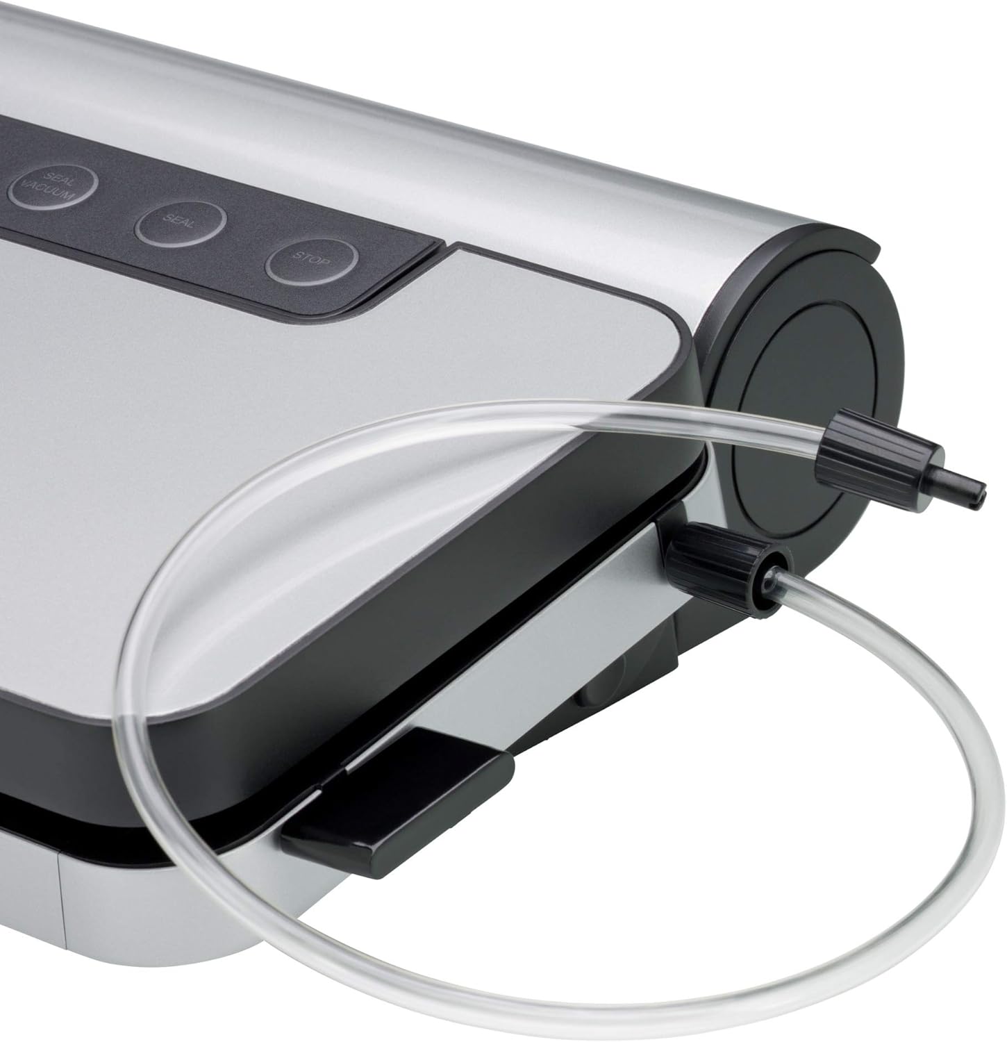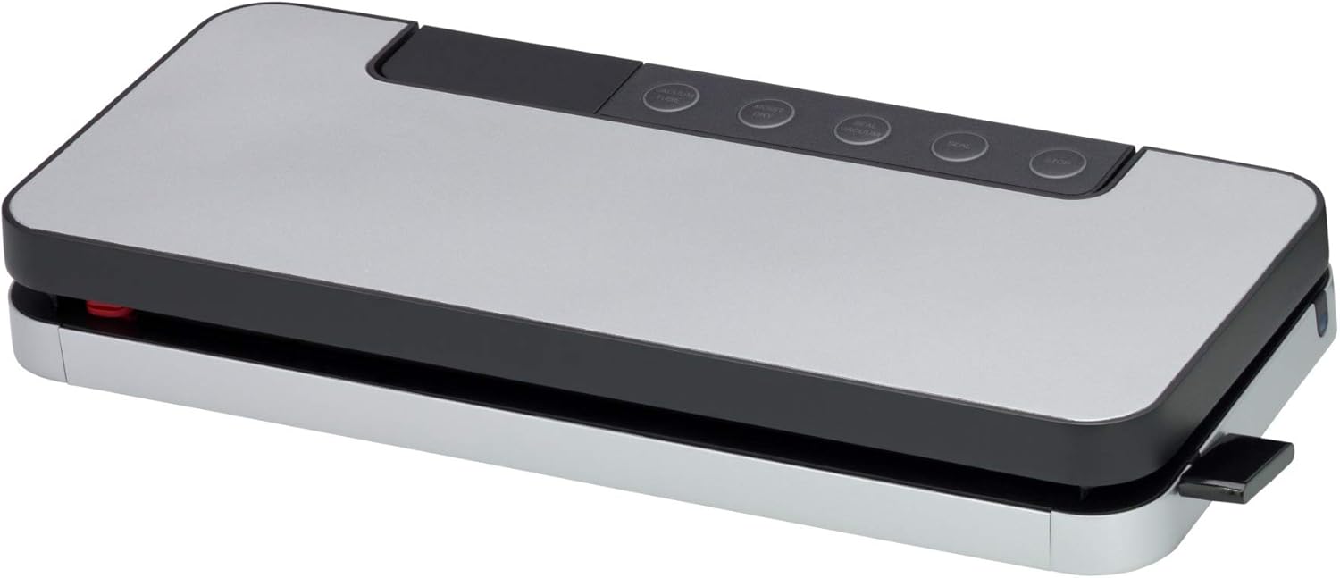 • Вакуумна опаковка за нежно и запазващо вкуса съхранение и консервиране на храна, включително вграден нож за фолио и подвижна кутия за съхранение до 6 метра ролка фолио