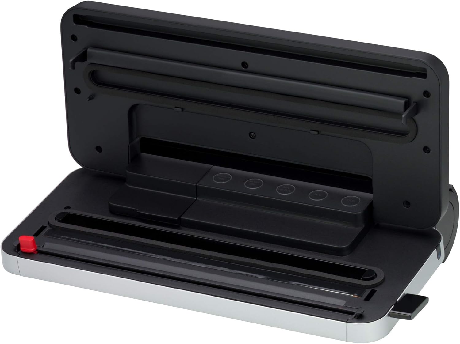 • Пет осветени функционални бутона: ръчно спиране, отделно вакуумиране и заваряване, настройка за суха/влажна храна, автоматично вакуумиране и заваряване
