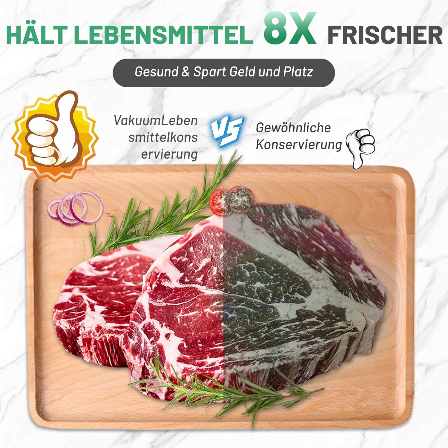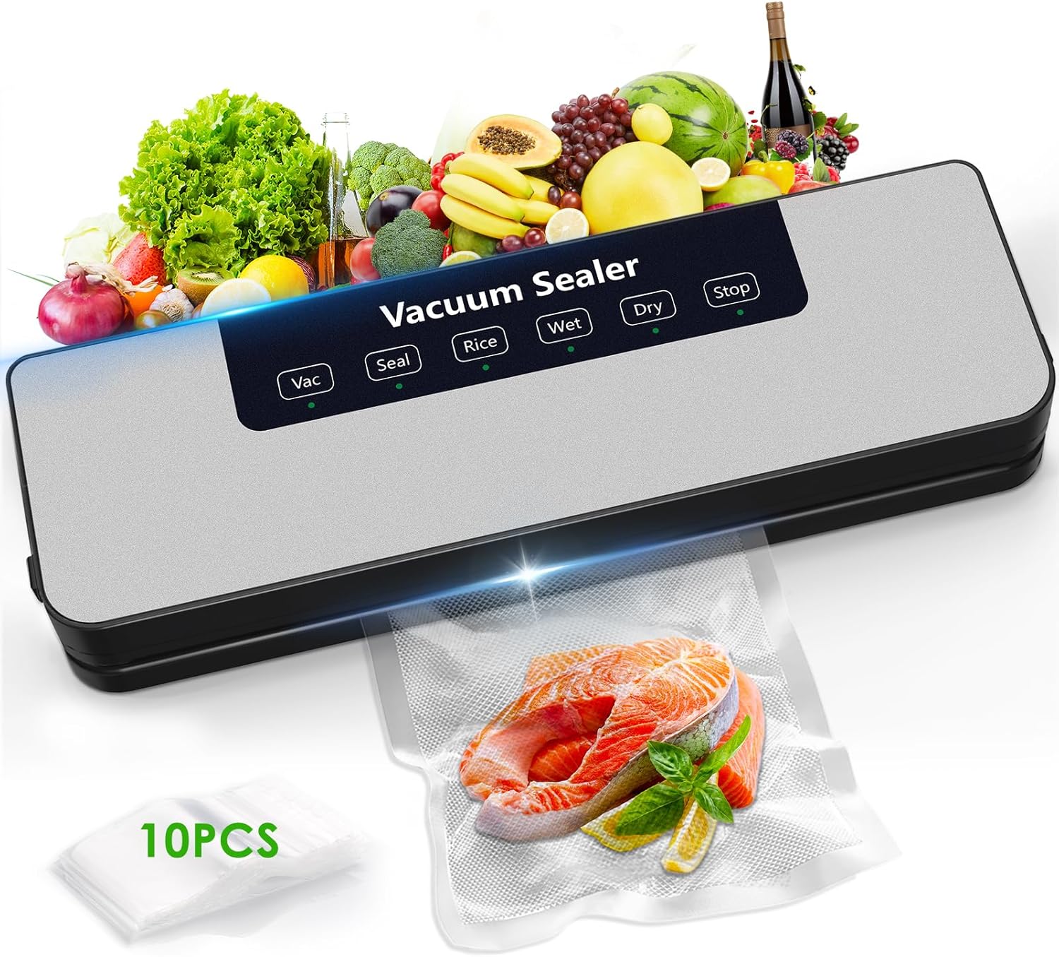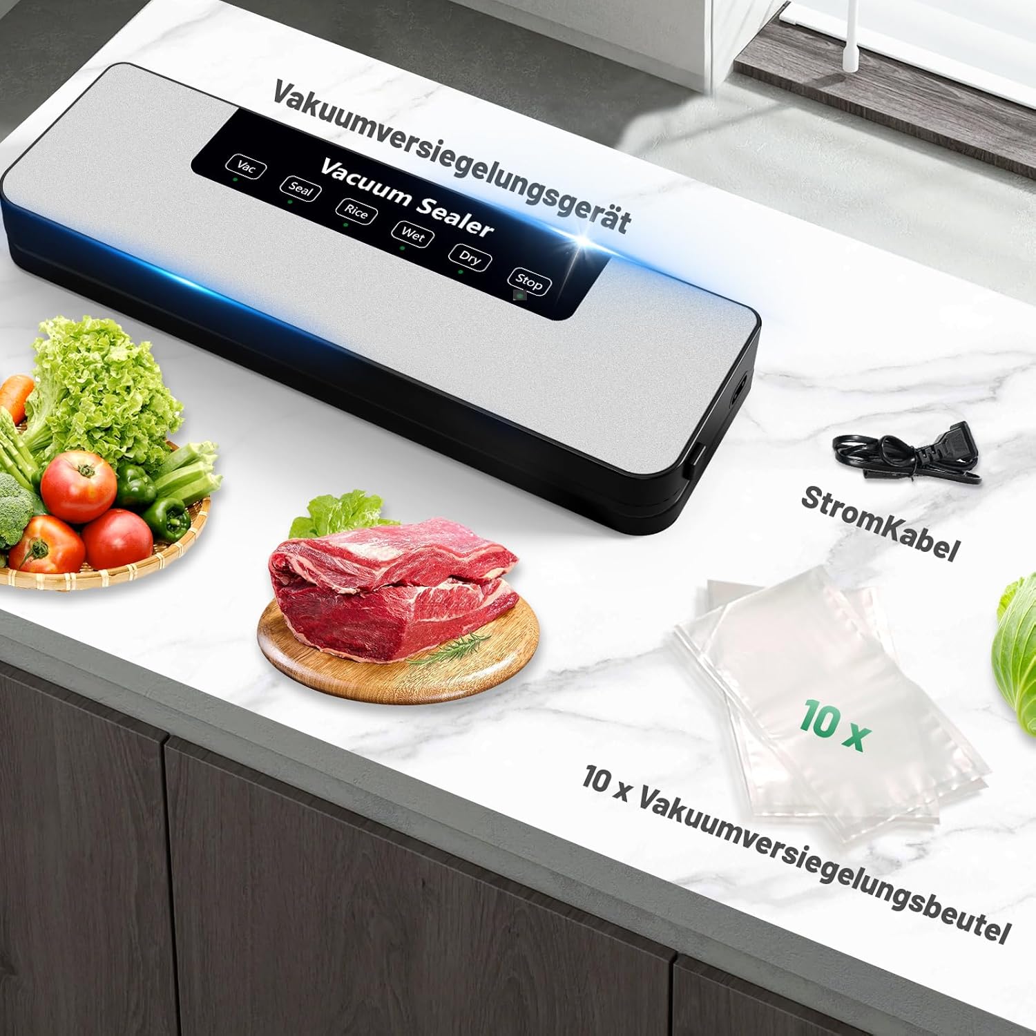 • Съхранение на свежест и бърза обработка: Вакуумният уред използва усъвършенствана технология за запечатване, за да удължи свежестта на храната 6-8 пъти. Той предотвратява загубата на влага и запазва хранителните вещества, за да можете да се наслаждавате на по-здравословни ястия. Идеален за съхранение на храна у дома, в ресторанти или при къмпинг и пътуване.
