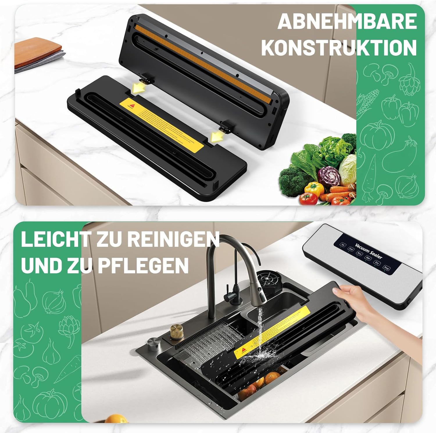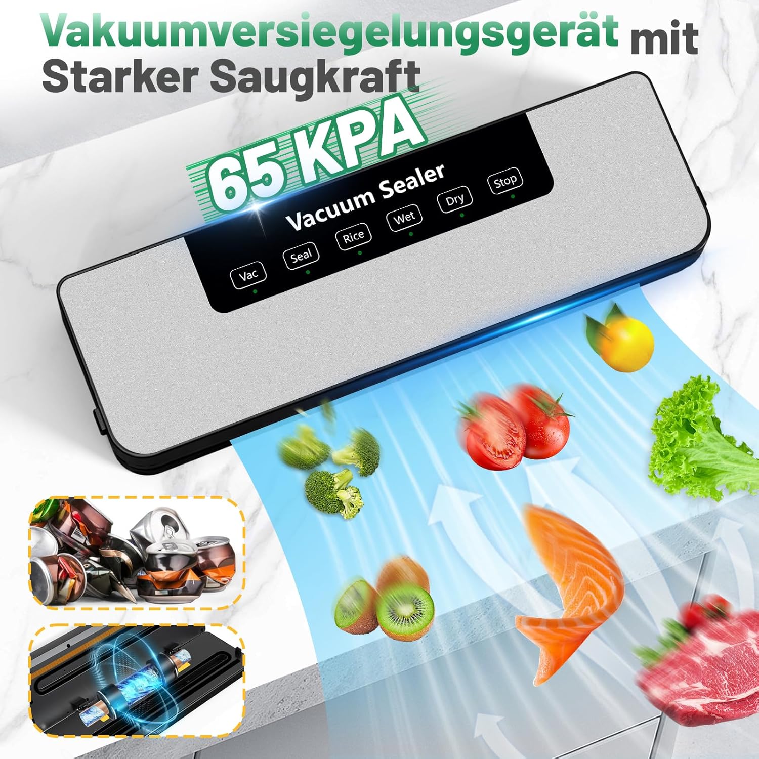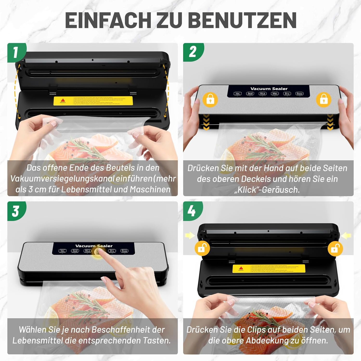 • Съхранение на свежест и бърза обработка: Вакуумният уред използва усъвършенствана технология за запечатване, за да удължи свежестта на храната 6-8 пъти. Той предотвратява загубата на влага и запазва хранителните вещества, за да можете да се наслаждавате на по-здравословни ястия. Идеален за съхранение на храна у дома, в ресторанти или при къмпинг и пътуване.