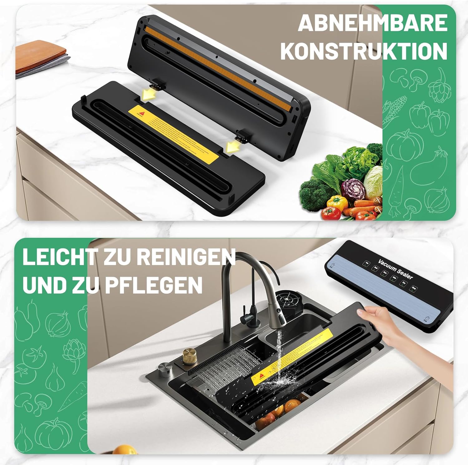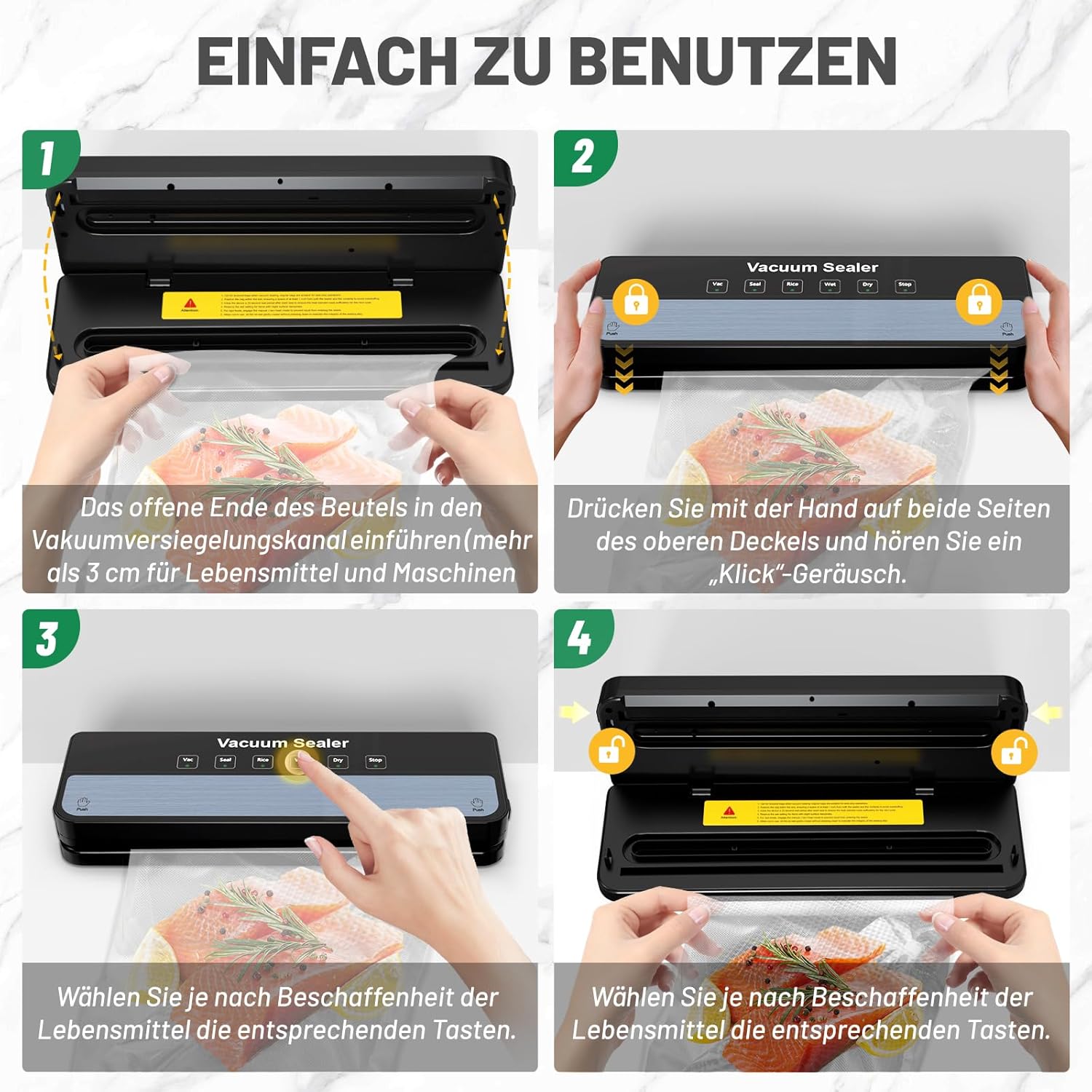 • Съхранение на свежест и бърза обработка: Вакуумният уред използва усъвършенствана технология за запечатване, за да удължи свежестта на храната 6-8 пъти. Той предотвратява загубата на влага и запазва хранителните вещества, за да можете да се наслаждавате на по-здравословни ястия. Идеален за съхранение на храна у дома, в ресторанти или при къмпинг и пътуване.