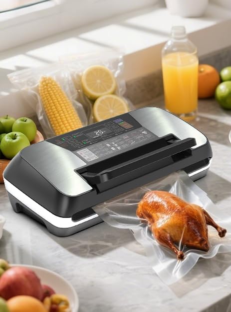 • Висока производителност: нашият вакуумен уред предлага впечатляваща всмукателна мощност от 85 kPa (25,1 inHg) и 130 вата за оптимално запечатване дори на големи храни. Прясното месо остава трайно до 3 години и е с изключително превъзходен вкус.