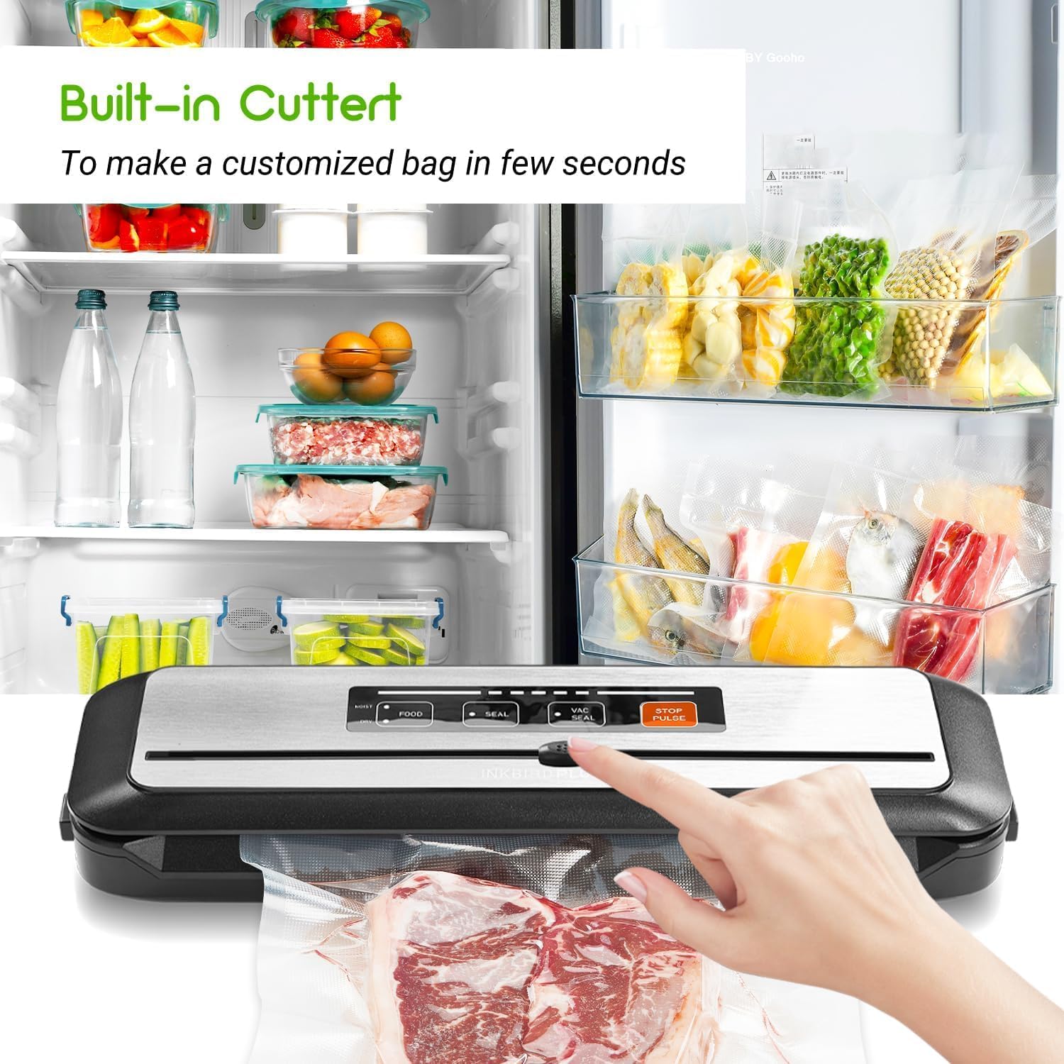 Вакуумна машина за запечатване на сухи и влажни храни, машина за запечатване с фолио за по-дълго запазване на свежестта на храната с вграден нож, автоматично вакуумиране и запечатване