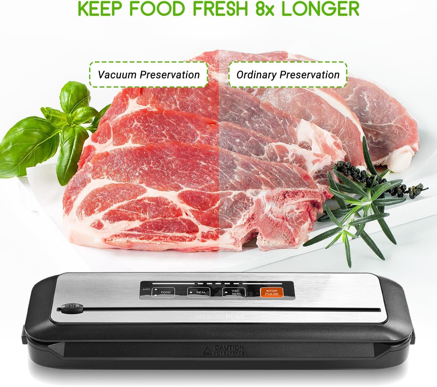 • Дисплей за обратно броене + защита от прегряване: двойното термично запечатване на системата за защита от прегряване на вакуумния уред осигурява безопасно, херметично термично запечатване, което може да удължи срока на годност на храната с 10 пъти, което прави всяко приложение безопасно и надеждно. LED екранът на контролния панел показва обратното броене на вакуумния процес в реално време, правейки напредъка му видим. Прави всяко приложение безопасно и надеждно.