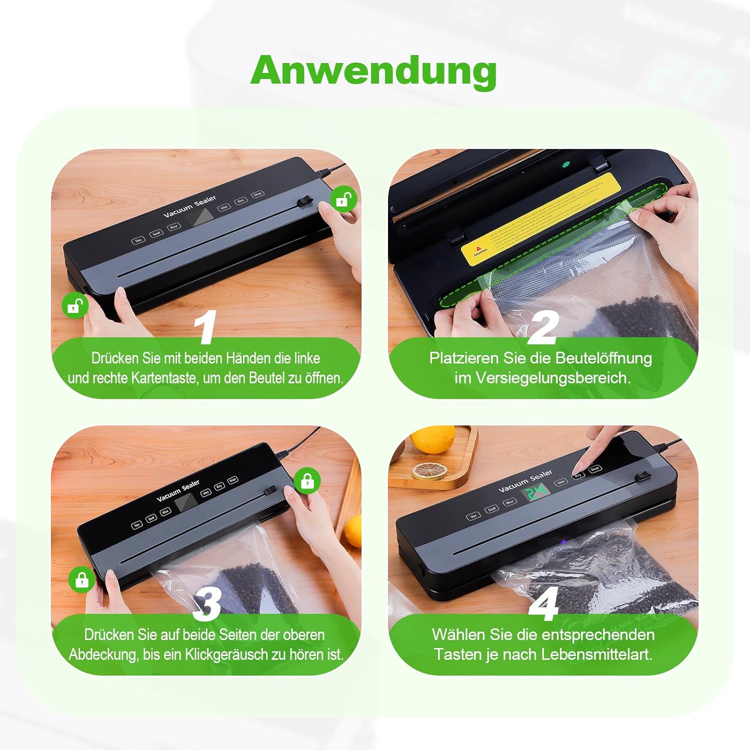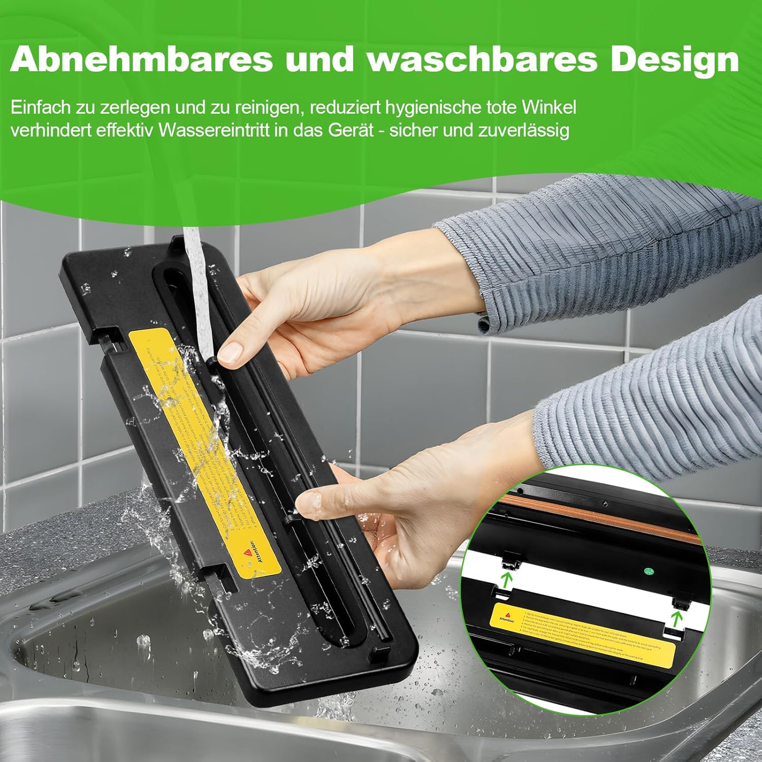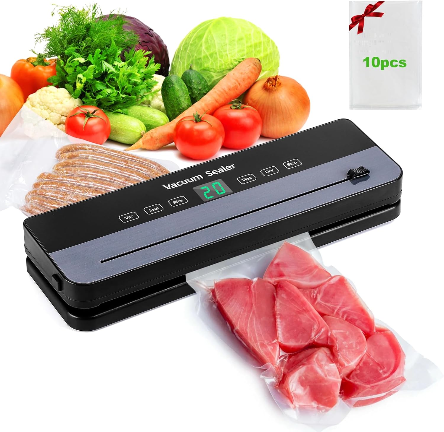 • 65kPa силен вакуум за плътно запечатване: Оборудван с високоскоростен мотор с 3000 об/мин, този вакууматор осигурява всмукателна мощност от 65kPa, осигурявайки плътно опаковане. Ширината на запечатване от 3 мм запазва храната свежа в кухни, ресторанти или у дома.