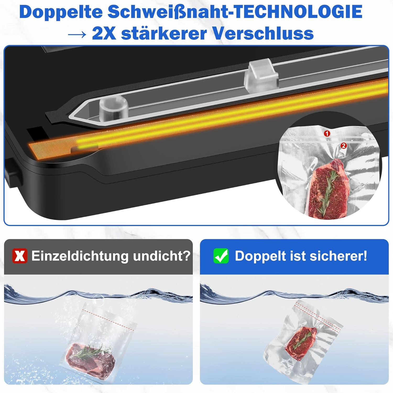• ДВОЙНИ ЗАВАРАЧНИ ШЕВОВЕ: двойните заварки с ширина до 13 мм осигуряват плътно и здраво уплътнение, значително подобряват уплътнителния ефект и предотвратяват изтичане на въздух