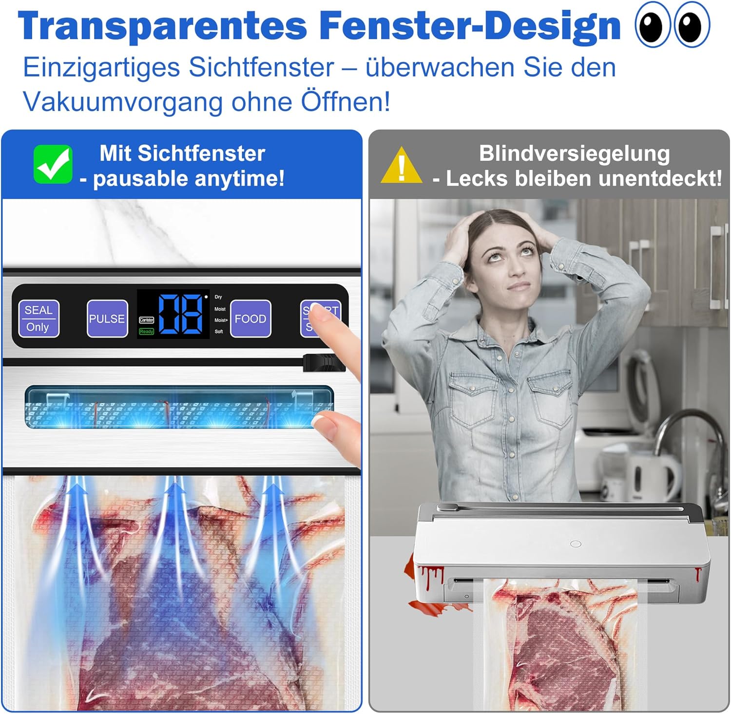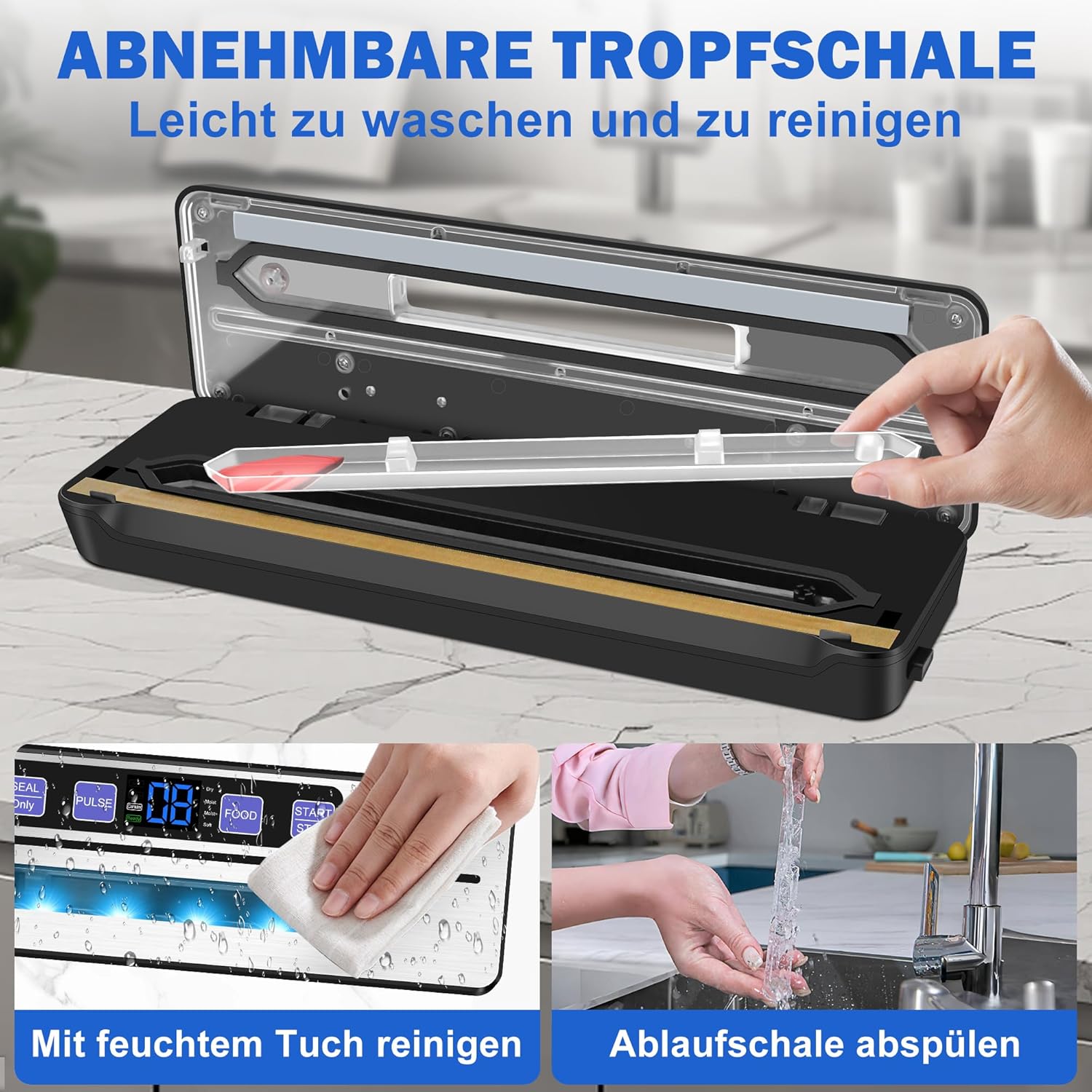 • Лесно почистване и съхранение: уплътнителните канали могат да се отстранят за почистване, а вътрешността може да се избърше със суха, мека кърпа. Компактният и лек дизайн улеснява съхранението и спестява място във вашата кухня.