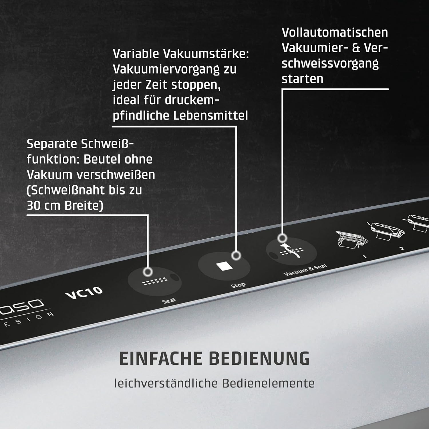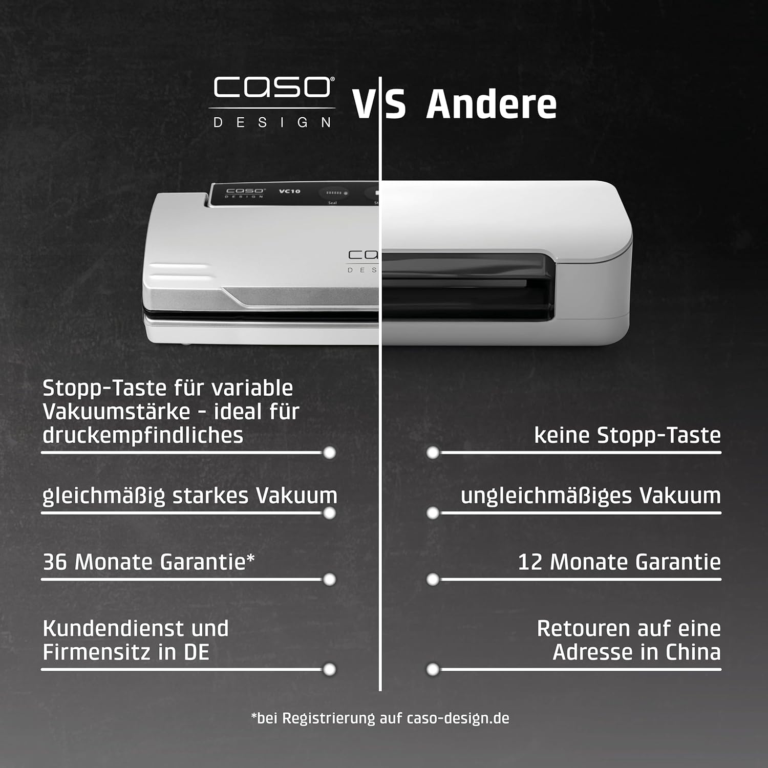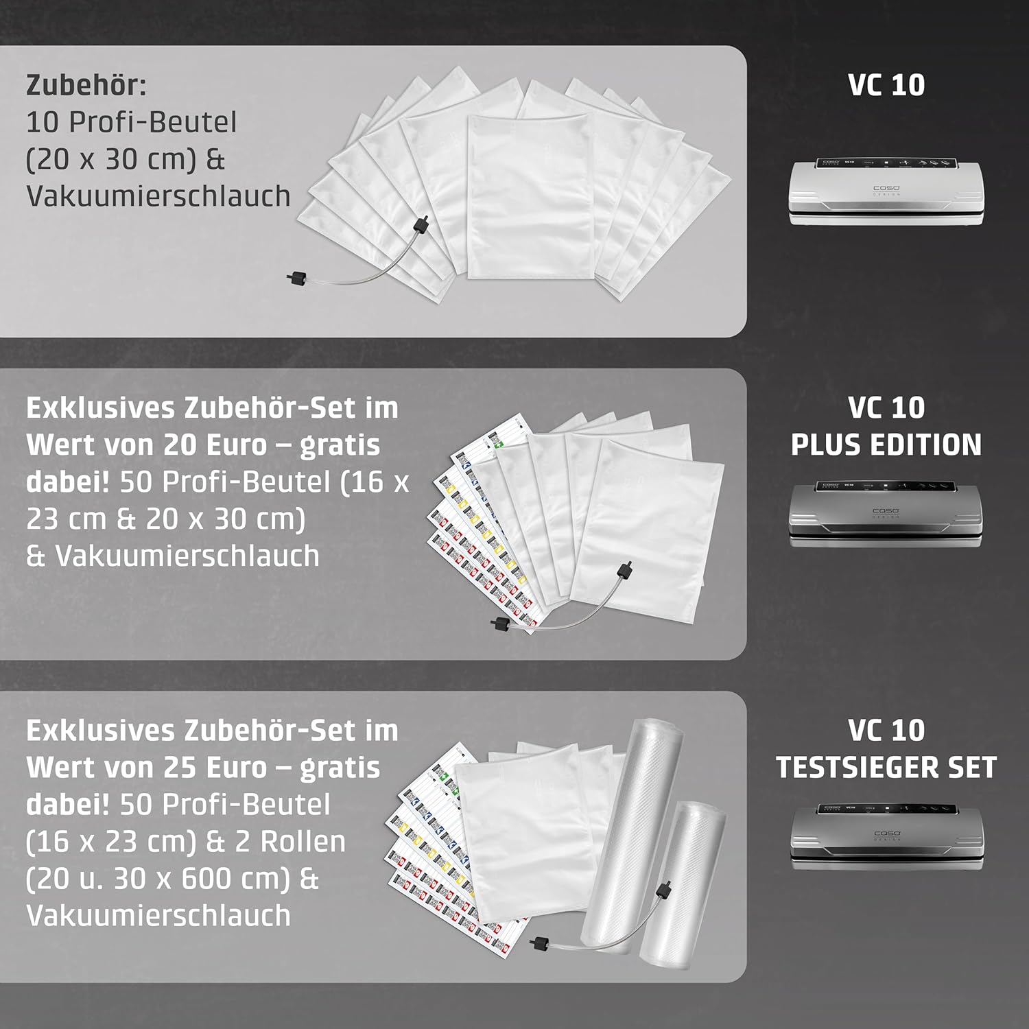 Вакуумна запечатваща машина CASO VC10 - победител в теста на Stiftung Warentest, вакуумна запечатваща машина, остатъците от храна са вакуумирани до 8 пъти по-дълго свежи, 30 см дълга и стабилна заварка, включително 10 професионални фолиеви торбички