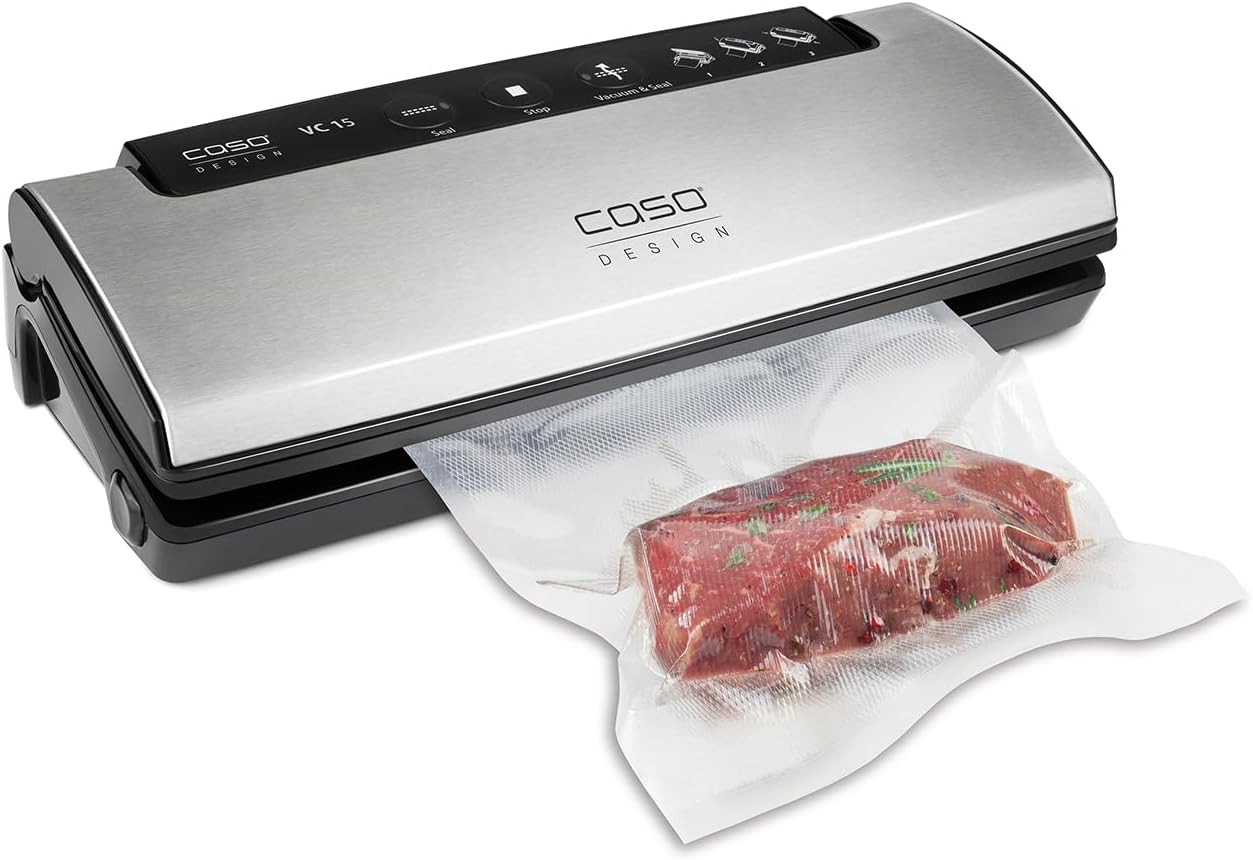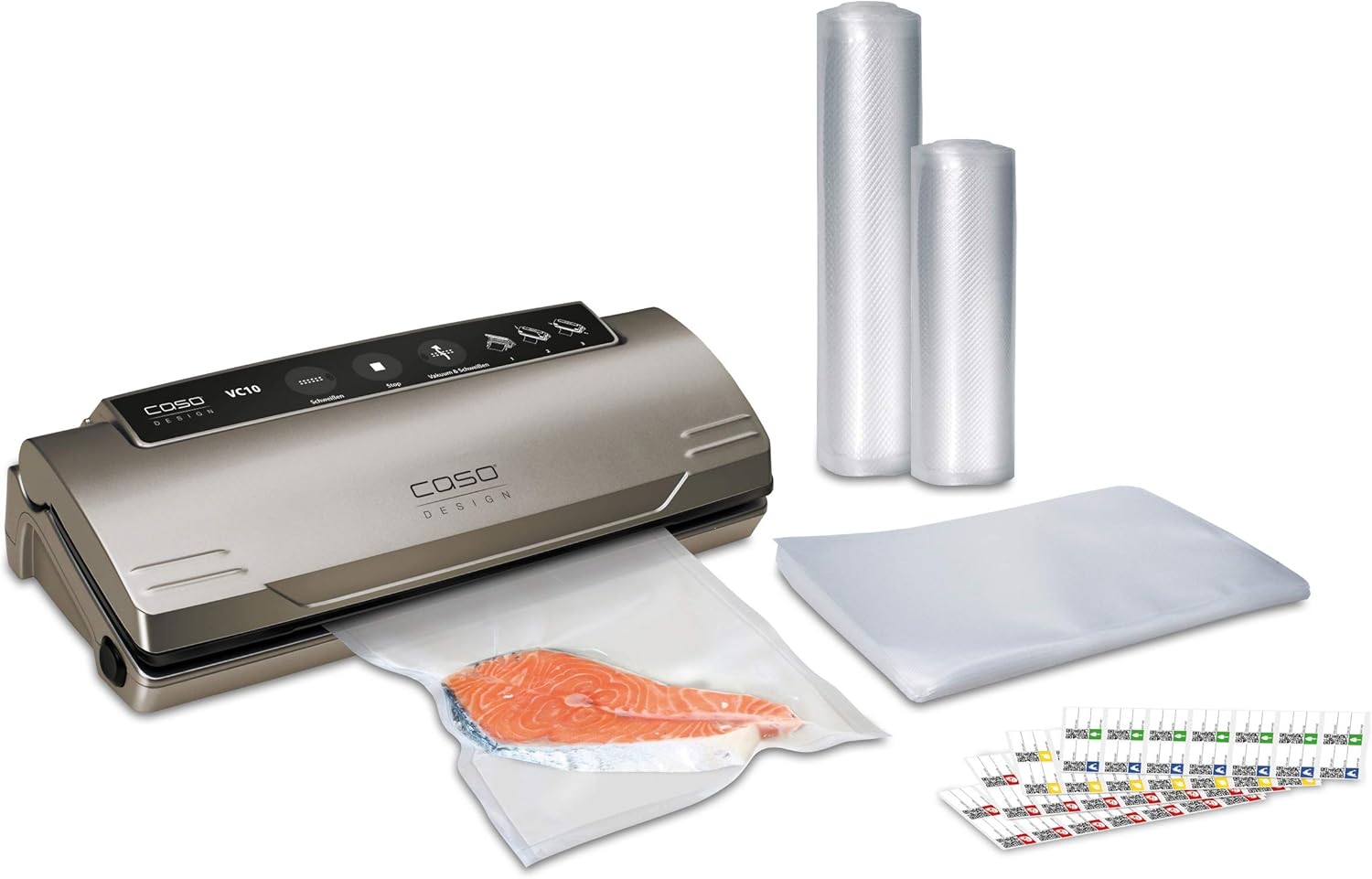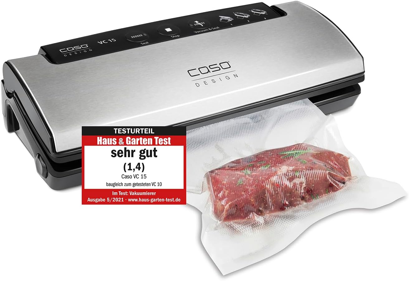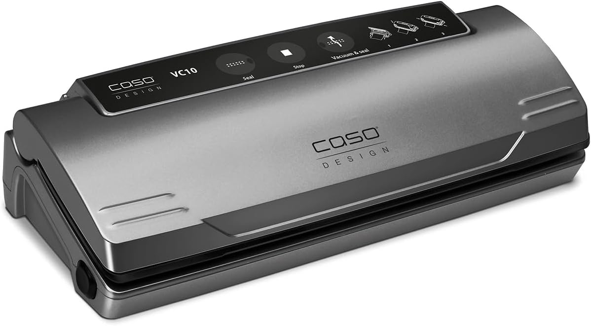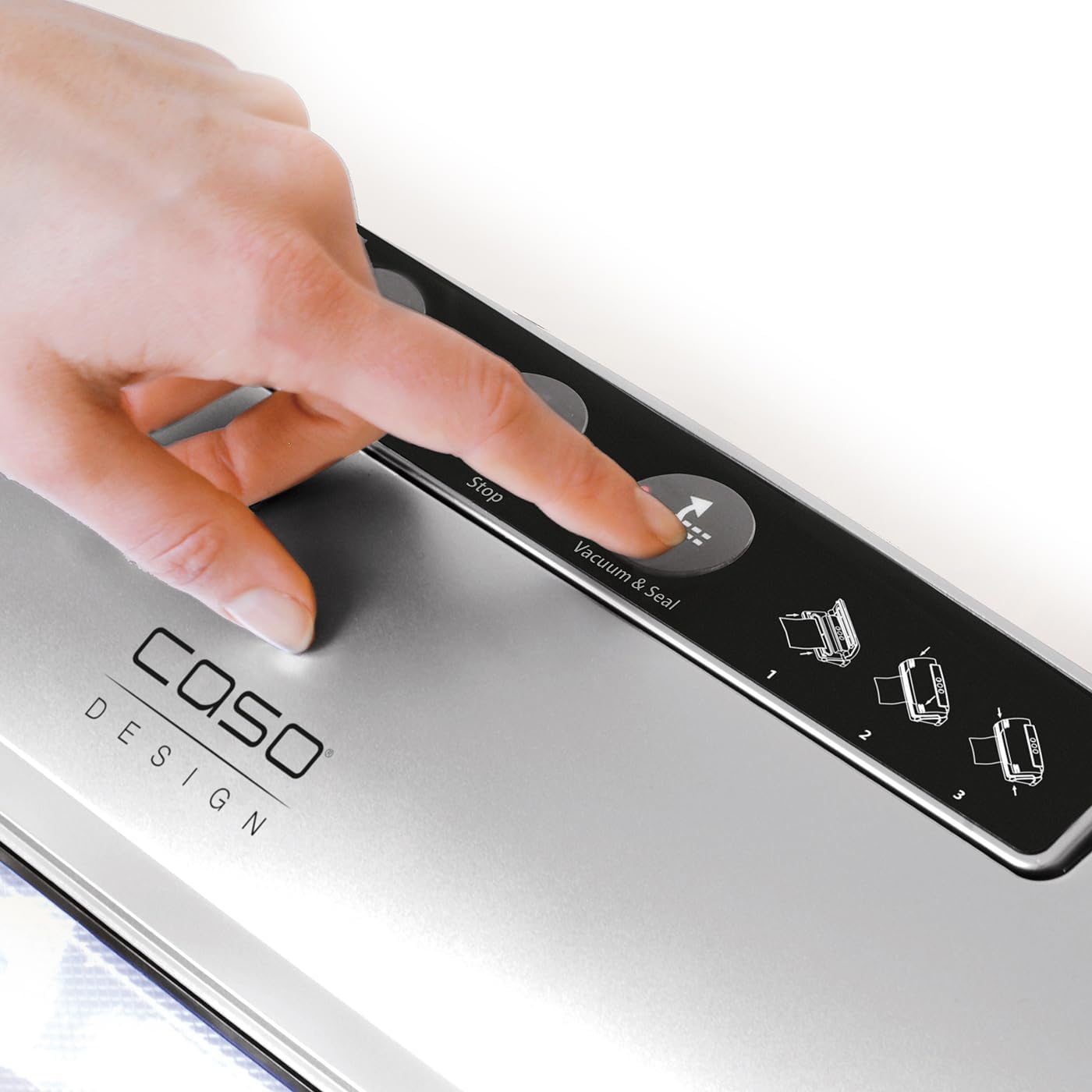 • Нашата вакуумна опаковъчна машина работи с променлива сила на вакуума, благодарение на бутона за спиране на вакуума. Всякакви дължини могат да се регулират чрез заварка с максимална ширина 30 см. *Победител в теста на Stiftung Warentest, GUT (2.0) издание 01/2018*.