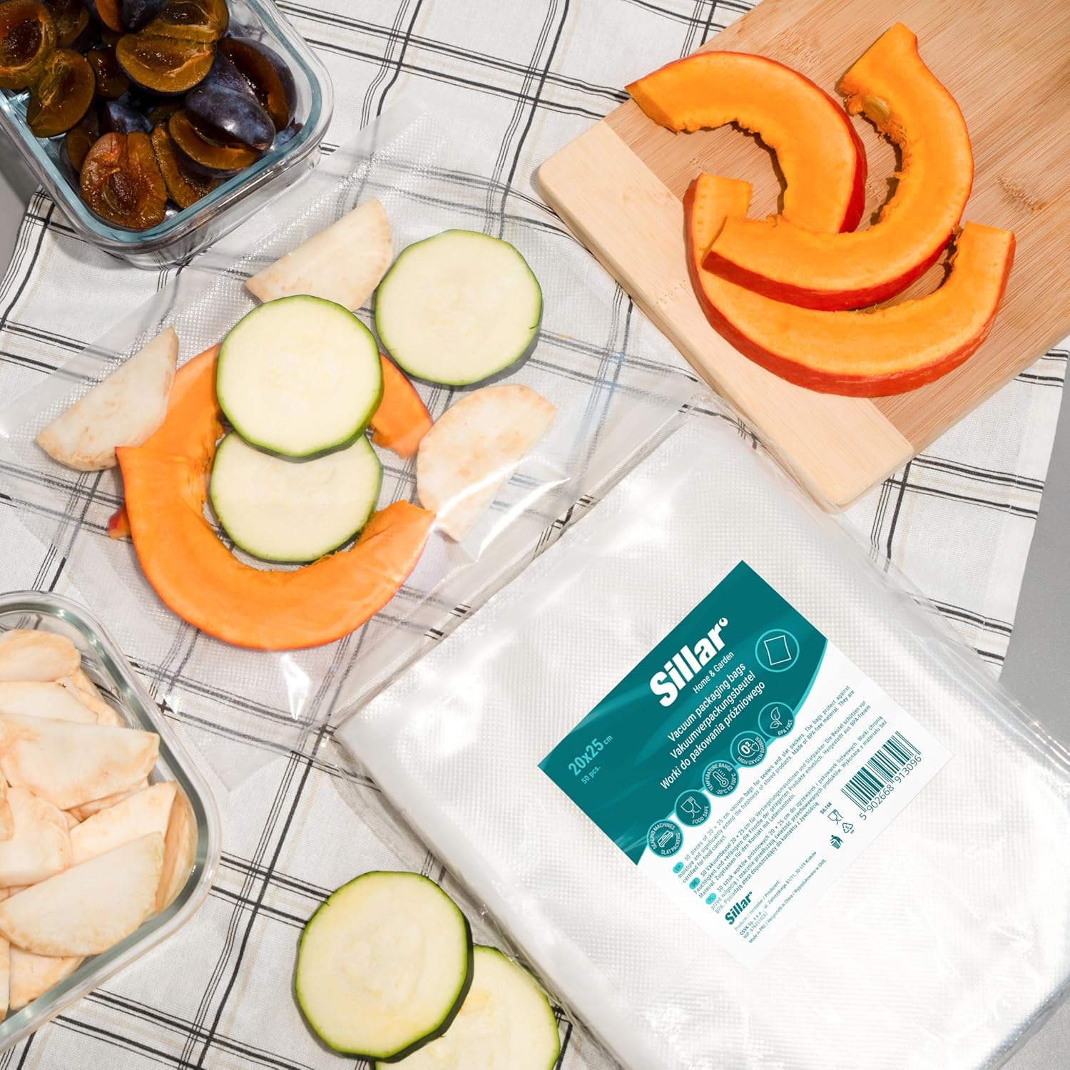 Вакуумни торбички Sillar, торбички за вакуумно запечатване на храна, 100 торбички, 20 x 25 см, за повечето вакуумни запечатващи машини и торбички за вакуумно запечатване на храна, устойчиви на варене и торбички за замразяване Sous Vide, -20-100°C, без BPA
