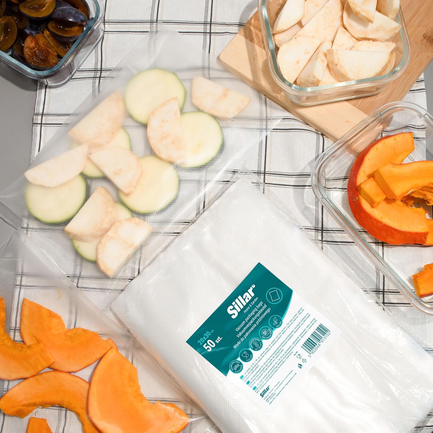 Вакуумни торбички Sillar, торбички за вакуумно запечатване на храна, 100 торбички, 20 x 30 см, за повечето вакуумни запечатващи машини и торбички за вакуумно запечатване на храна, устойчиви на варене и торбички за замразяване Sous Vide, -20-100°C, без BPA
