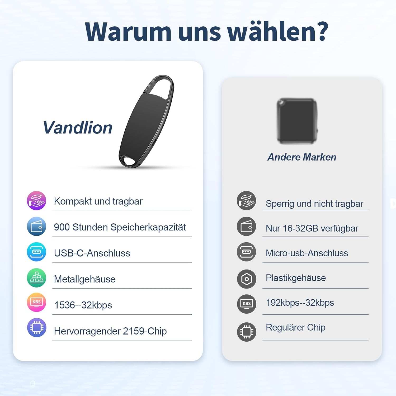 • Топло обслужване: Диктофонът Vandlion е идеален за студенти, учители, журналисти, бизнесмени и всеки, който иска да запечата специални моменти с гласа си. Не се колебайте да се свържете с нашия екип за поддръжка, ако имате въпроси или проблеми. Предлагаме доживотна поддръжка на всички наши клиенти. Бърз отговор в рамките на 24 часа!