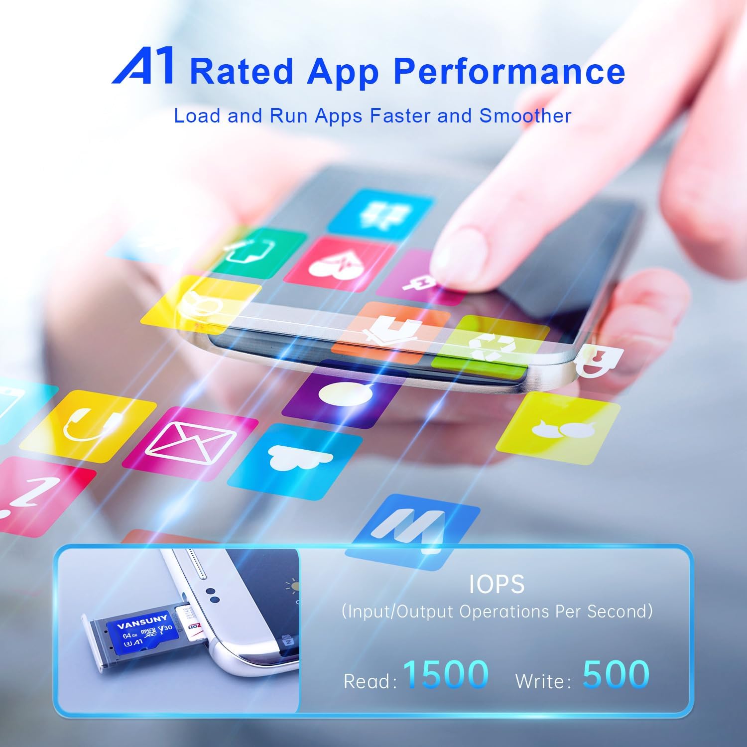 Тази Micro SD SDXC карта с A1 производителност за приложения е идеална за смартфони и таблети с Android за бързо зареждане и обработка на приложения.