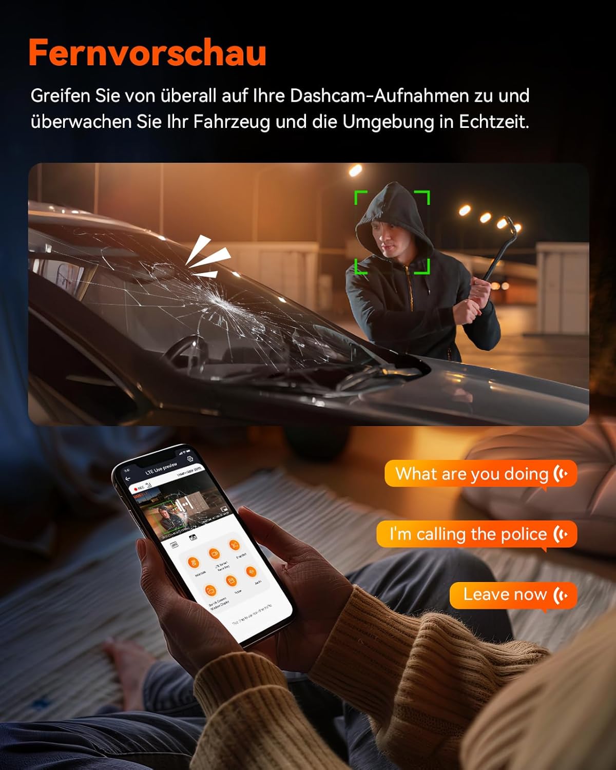 • Дистанционно преглеждане в реално време: Насладете се на безпроблемно стрийминг на живо с ниска латентност с множество камери и високоскоростно LTE предаване за по-плавни видео емисии. Двупосочната комуникация позволява обратна връзка в реално време, повишавайки ефективността на възпирането. Незабавно заснемайте екранни снимки или записвайте видео на живо от видеорегистратор и го запазете директно на телефона си за бързо събиране и споделяне на доказателства.