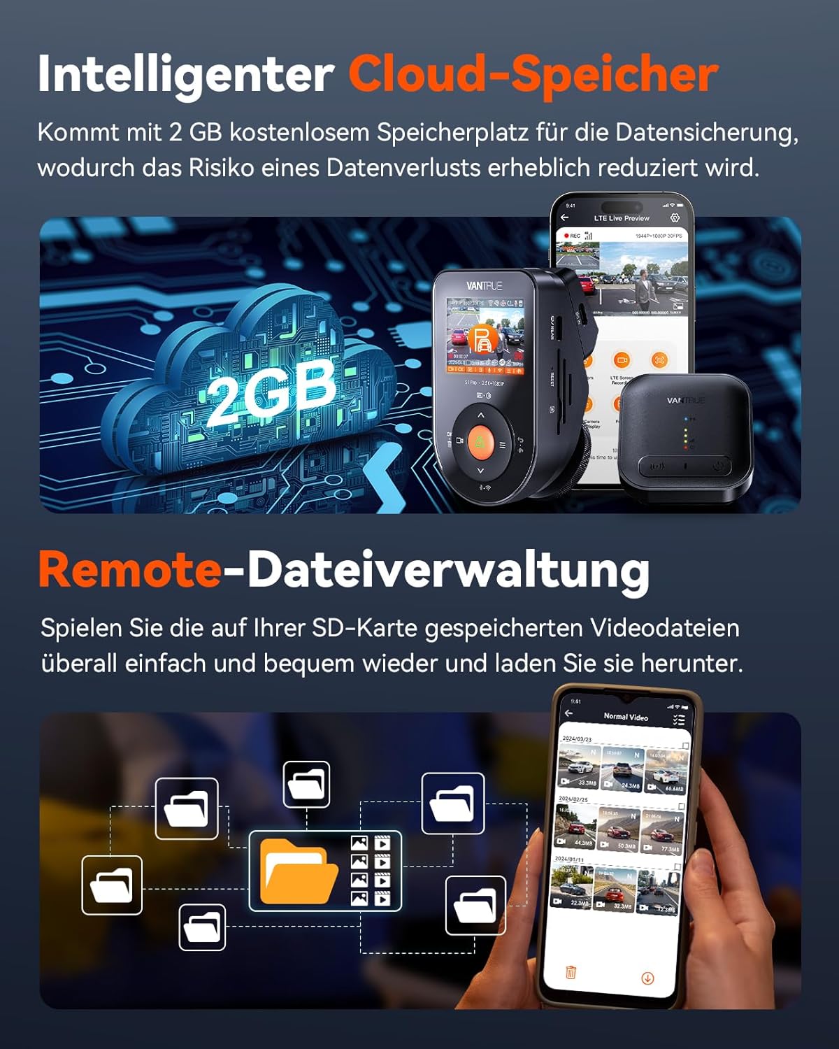 VANTRUE LTE модул със SIM карта за видеорегистратор E1Pro, N4ProS, N5S, S1ProMax с дистанционен преглед в реално време, геозониране и аларма, известяване за инциденти, проследяване на местоположението на превозното средство, дистанционно активиране