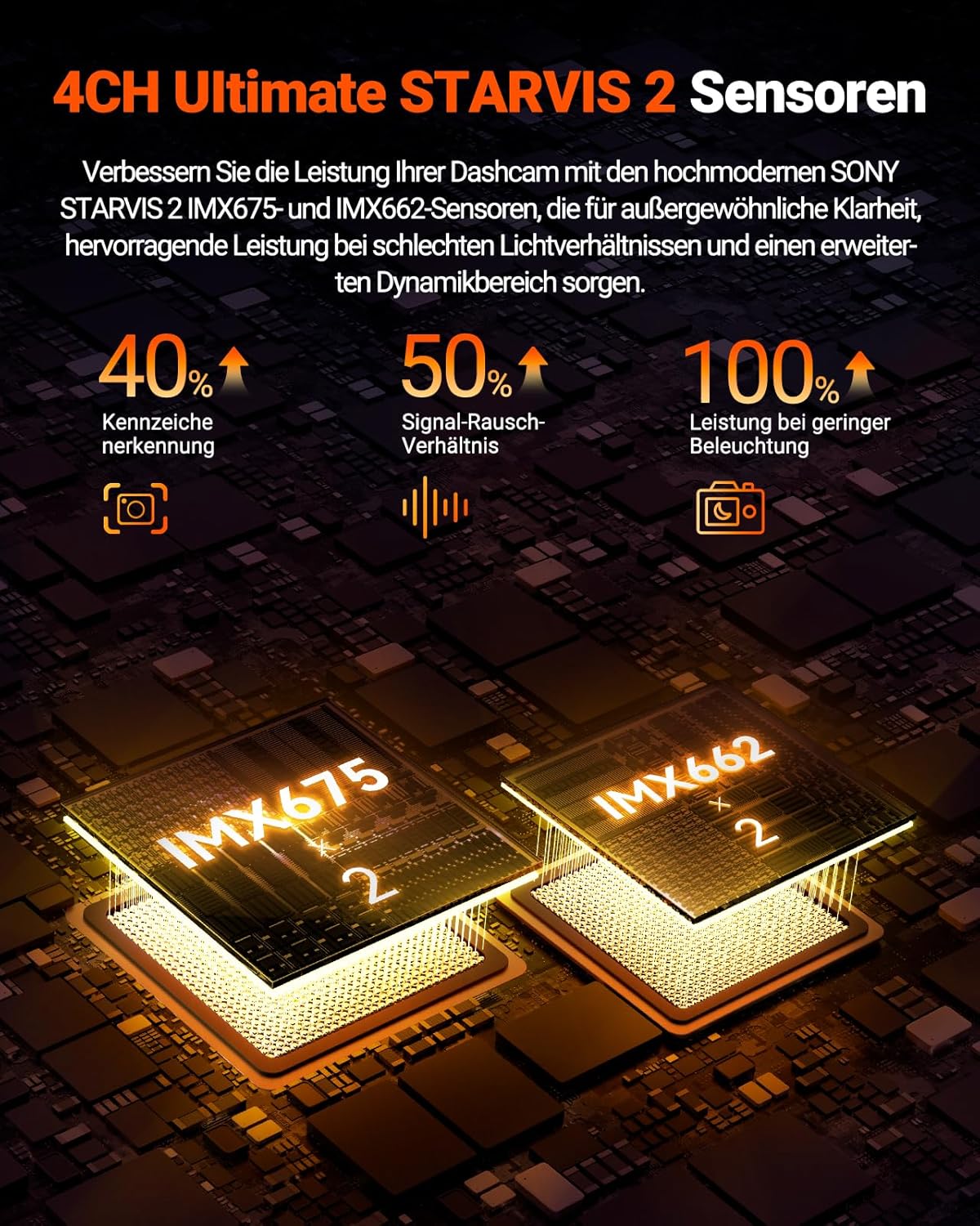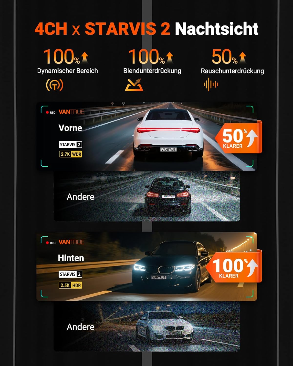 • УНИКАЛНА 4-ОБЕКТИВНА STARVIS 2 HDR АВТОМОБИЛНА КАМЕРА - N5S е първата видеокамера с 4-канален чип STARVIS 2, осигуряващ истинско високопроизводително изживяване. Двуканалният STARVIS 2 IMX675 (отпред/отзад) и двойният IMX662 (в автомобила) сензори осигуряват надеждни, висококачествени изображения. Благодарение на 4-каналния HDR, шофьорите получават по-ясна представа за пътя, което улеснява навигирането в пътните ситуации и заснемането на важни моменти по-елегантно. Като всеотдаен доставчик, VANTRUE непрекъснато разработва своите продукти от 10 години, за да направи шофирането ви по-безопасно.