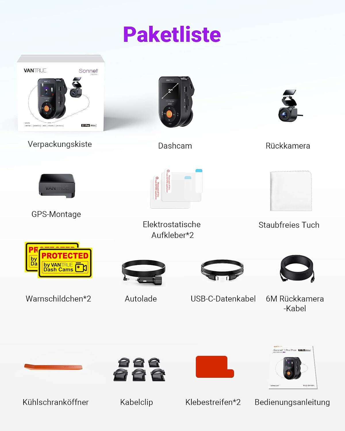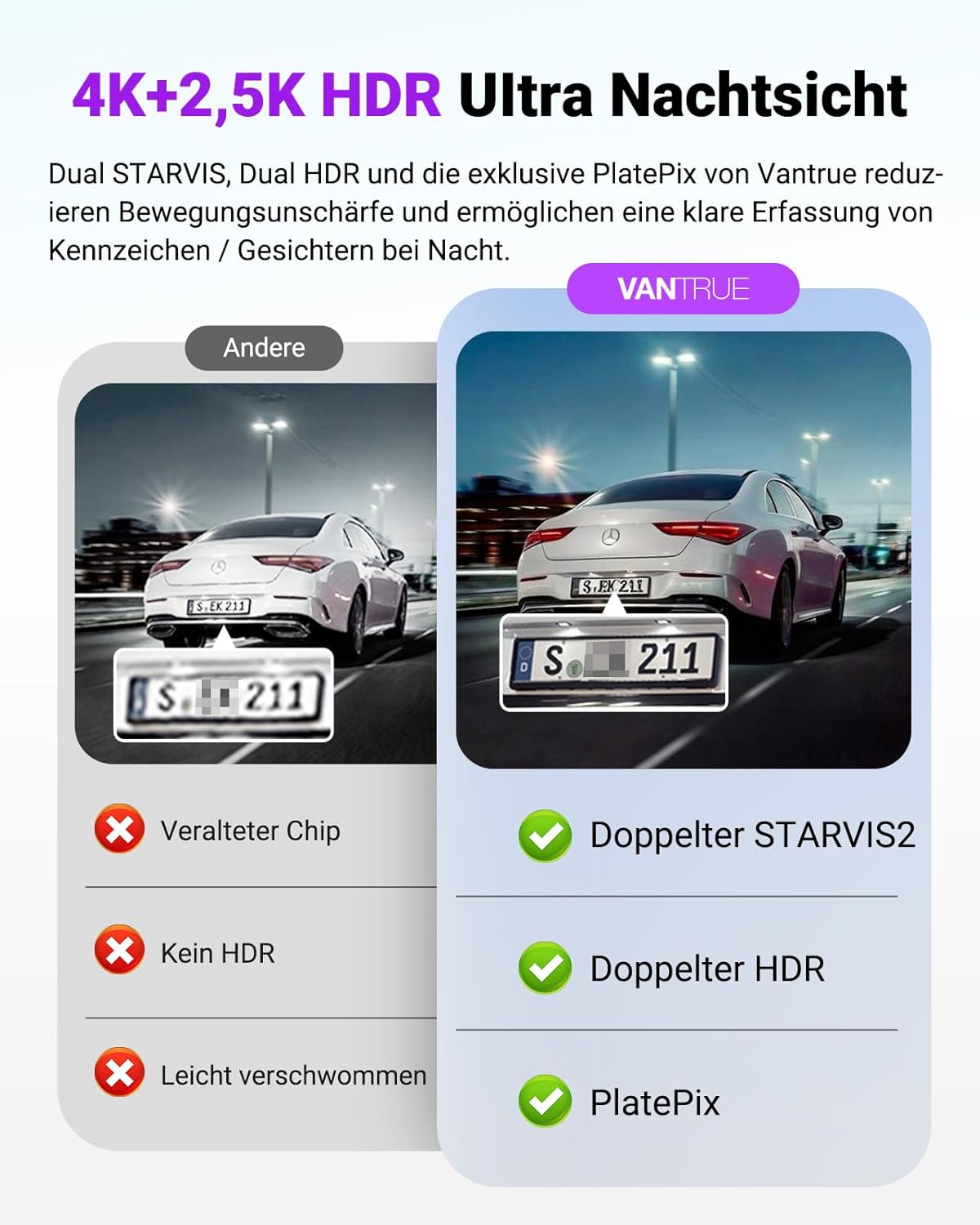 • GARANTIERT ZUFRIEDEN - Wir sind bereits überzeugt und möchten dich von VANTRUE begeistern. Für bessere Verwendung findest du Optional CPL Filter (B0B2WCN1FD) beim Ausgleichen der Belichtung und farbenfrohen Bild, sowie OPTIONALE kabellose Fernbedienung MUSS EXTRA KAUFEN (B0CBVCYPBQ), beim manuellen Zugriff auf nützliche Aufnahmen und Audios. Unser deutscher Kundenservice hilft dir gern, sollte es doch mal zu Problemen kommen. Für lange 18-Monate-Garantie bitte registrieren Sie bei VANTRUE Site